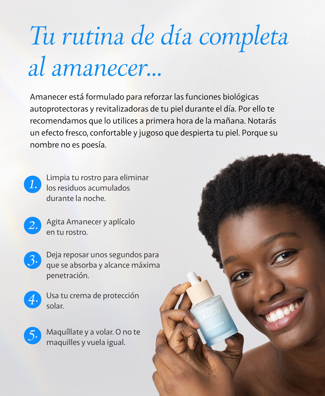 Sí. Sin embargo, Amanecer está formulado para reforzar las funciones biológicas de tu piel durante el día respetando nuestro ritmo circadiano. Para la noche te recomendamos Medianoche elixir multi activo renovador. Aquí puedes adquirir el pack Amanecer + Medianoche con ventajas exclusivas.