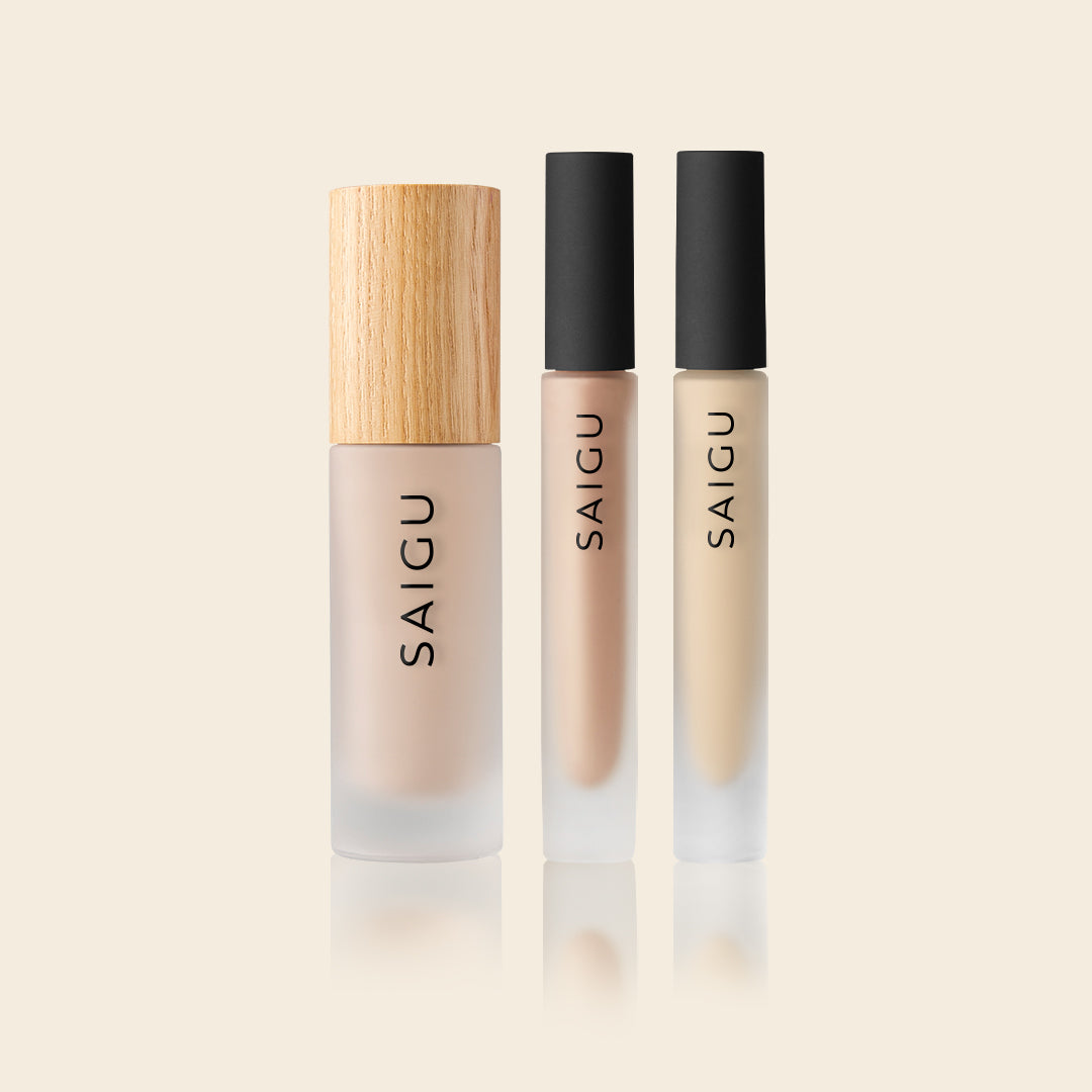 Un buen maquillaje se construye a partir de una buena base. Y nunca mejor dicho, porque la de Saigu tiene todo lo que la piel necesita para que se vea bonita y unificada en solo dos minutos: es ligera, con una cobertura media, y está enriquecida con ingredientes que contienen activos hidratantes para que la notes mucho luminosa y elástica. El corrector despeja tu mirada y con muy poco producto se consigue un contorno de ojos fresco y descansado, como si hubieras dormido 8 horas del tirón. Y por último la guinda final: el iluminador líquido que recrea la luminosidad natural de la piel y que gracias a su partícula ultra fina deja una reflectancia preciosa, fina y elegante.