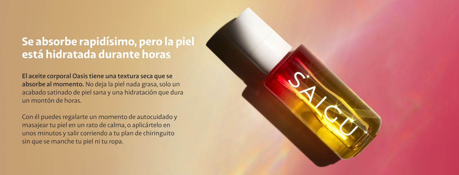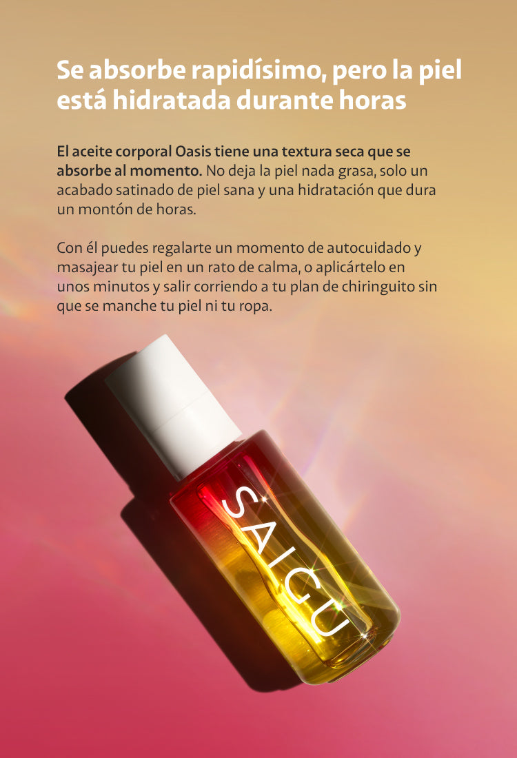 Al ser un aceite para el cuerpo muy hidratante está pensado para que lo uses solo. Pero si prefieres por ejemplo añadir unas gotas de Oasis a tu crema hidratante, también puedes hacerlo.