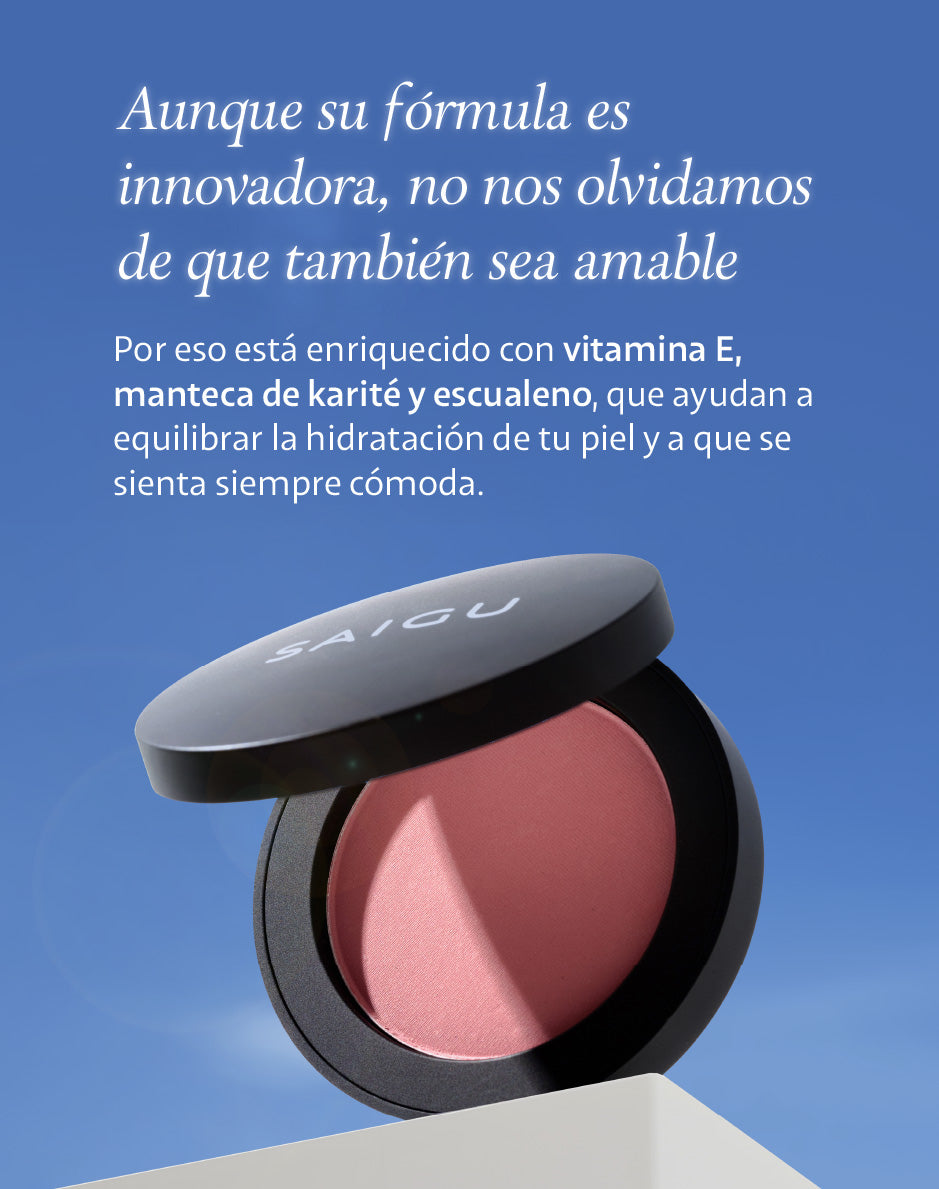 Si amas los coloretes en crema de Saigu, este es su mejor complemento. Puedes usarlo solo o encima del crema para sellar y dar más duración (lo que ahora llaman “blush combo”).