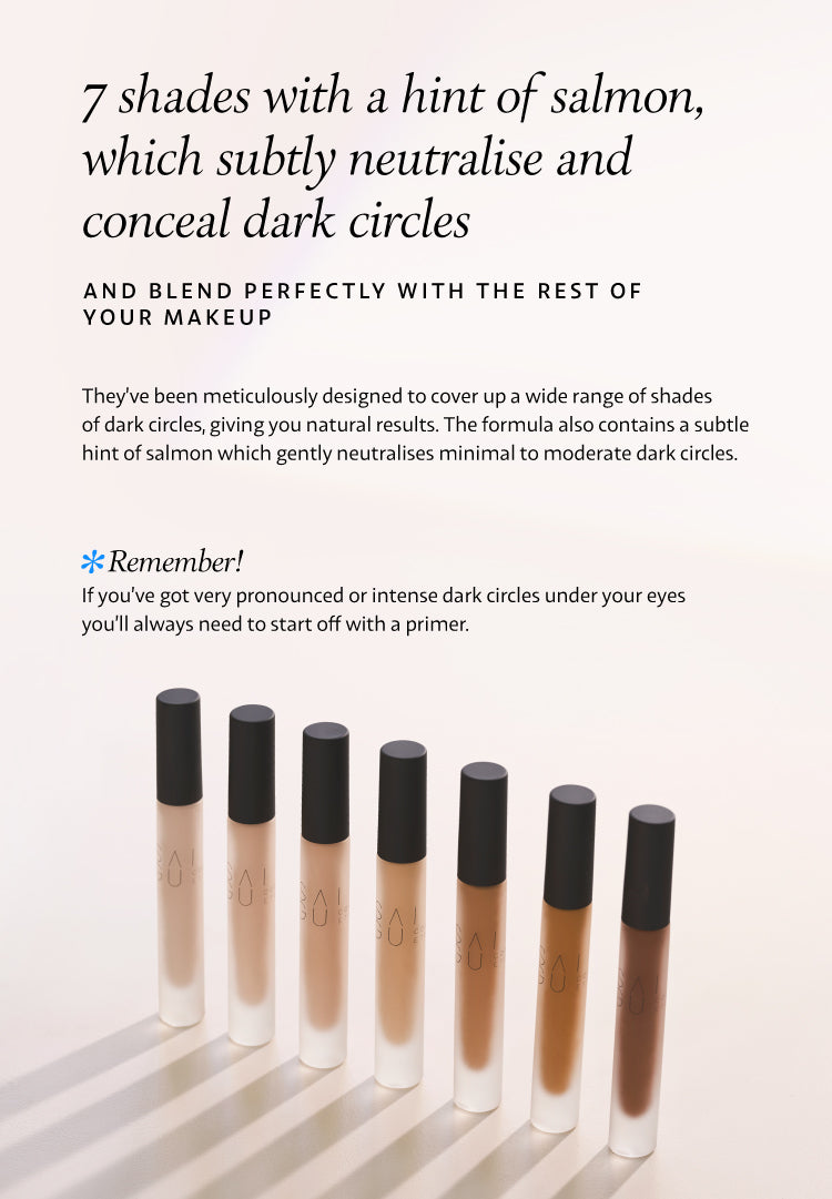 Although all these shades have a subtle subtone of salmon/peach to help neutralise dark circles with pigmentation that’s minimal or approaching moderate, if yours are very pronounced and intense you’ll need to use a primer.