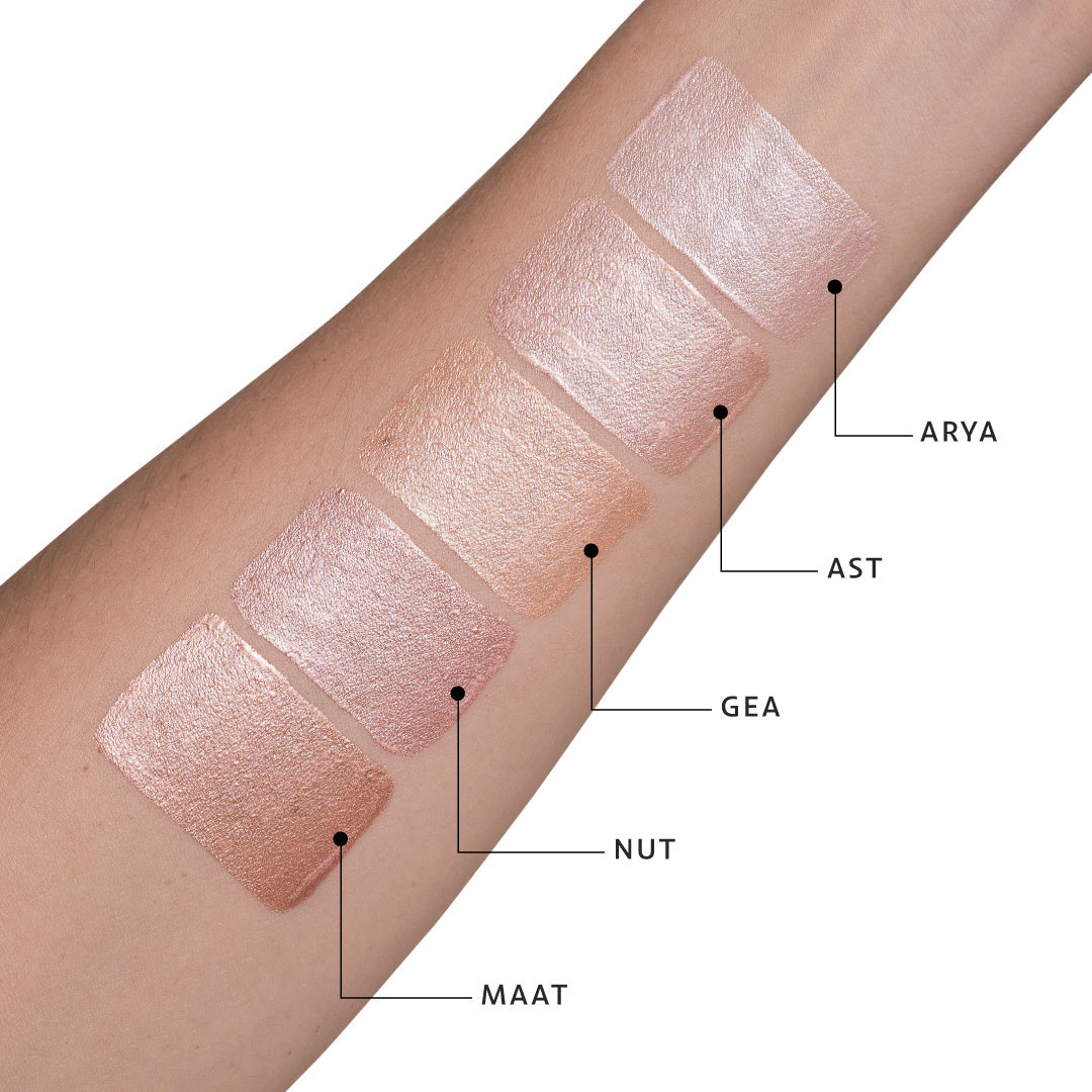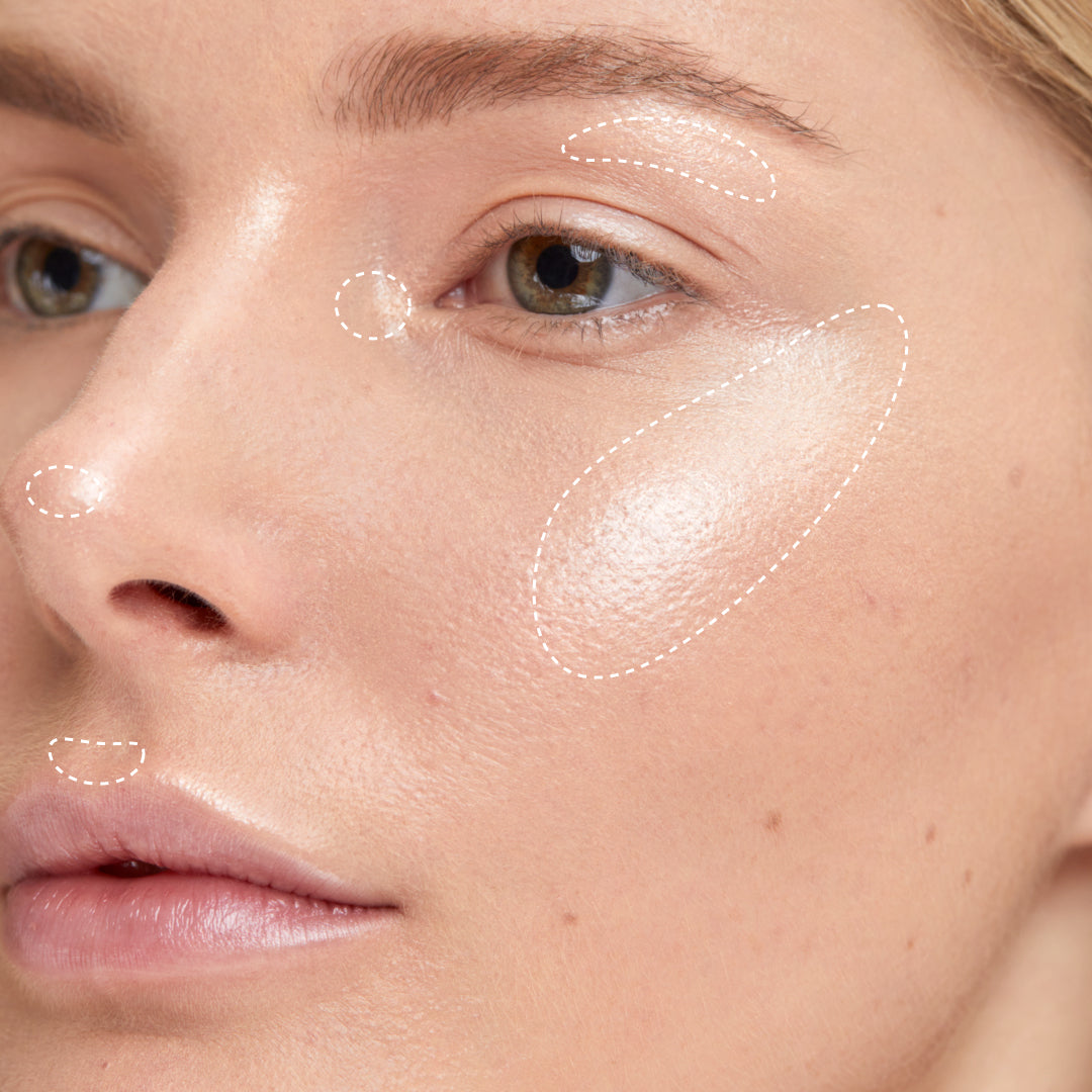 We wanted to create a highlighter with titsy tiny light particles. But we also wanted it to have active ingredients that do wonderful things for your skin.