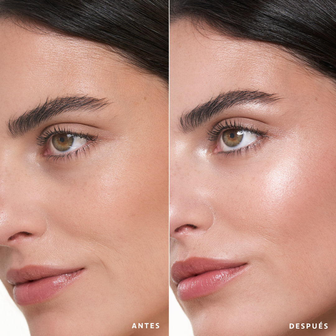¿Sabes esas pieles resplandecientes, hidratadas y saludables que al mirarlas piensas, ¿pero cómo lo consiguen? Esto es lo que hace el iluminador. Devolverle la luminosidad que pierde el rostro al aplicar una base de maquillaje o darle ese glow up para que se vea radiante.