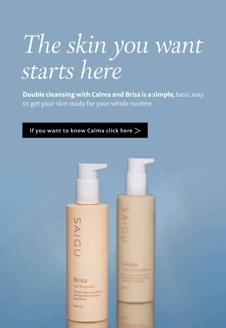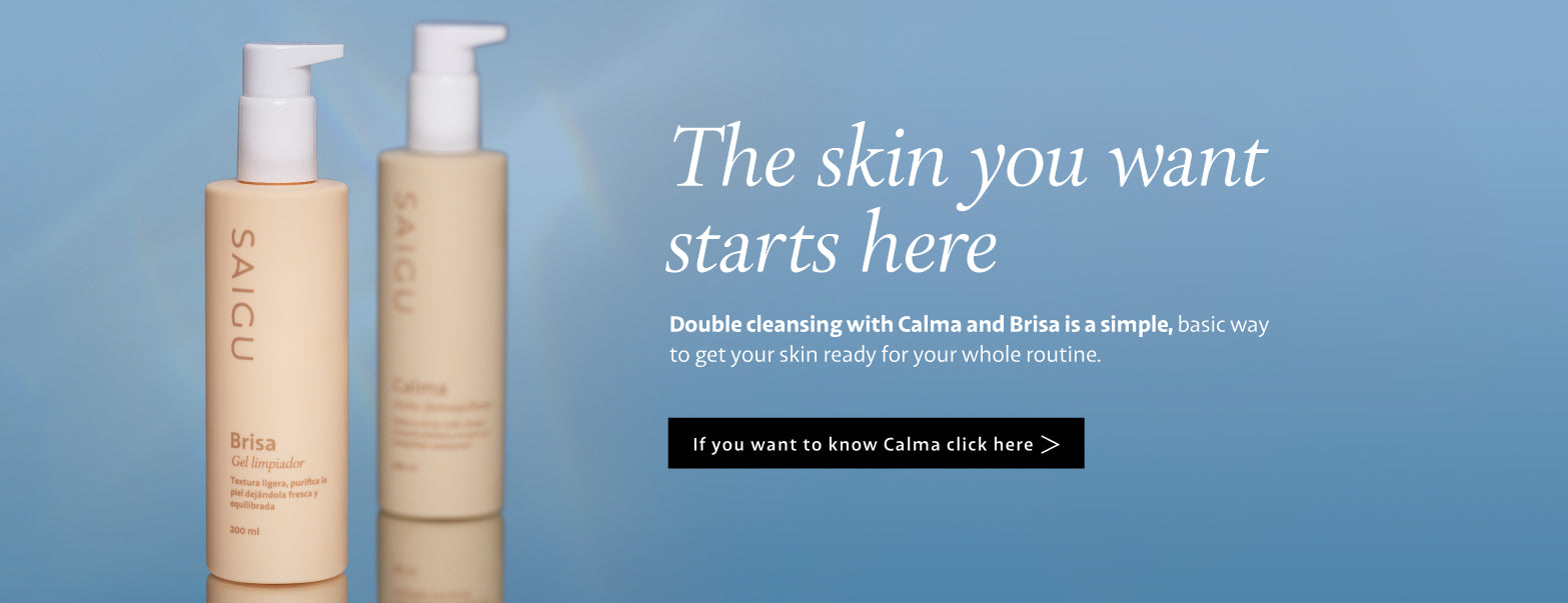 Both cleanse the skin deeply, but each one acts differently and plays its own role in a double cleansing routine. The makeup remover oil Calma removes any traces of makeup, excess sebum and cosmetics like sun cream. The cleansing gel deals with dirt, impurities, pollution and dead cells.