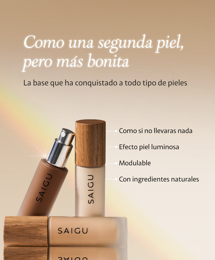 Encontrar tu tono puede dar vértigo si nunca has comprado maquillaje online, pero en Saigu damos muchas facilidades: tenemos un test de 2 minutos que te sugiere el tono ideal, un equipo de atención al cliente que con solo una foto adivina tu color, y cambios y devoluciones gratis durante 15 días si al recibirla no es lo que esperabas o no te gusta.