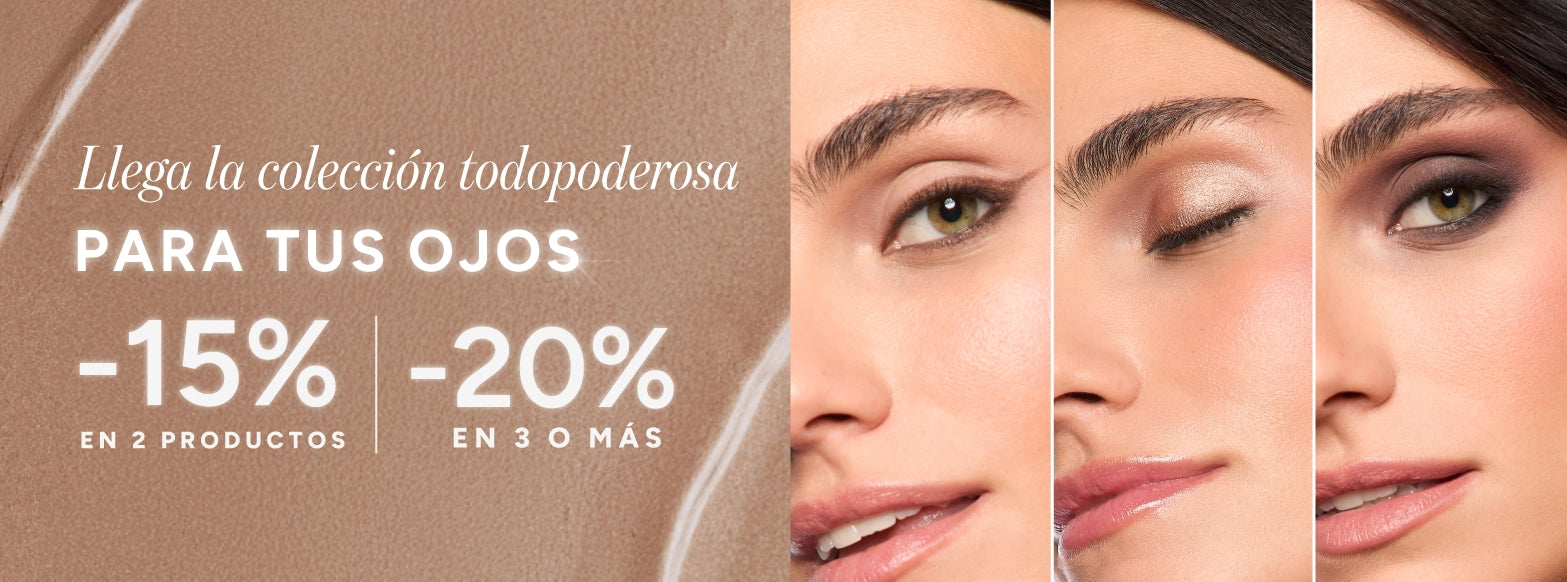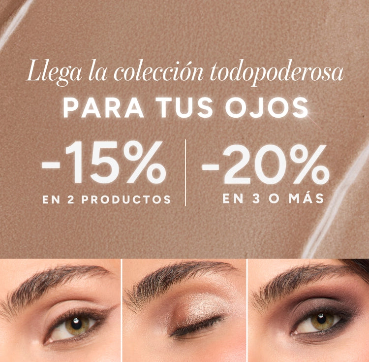 Del 2 al 22 de febrero tienes un -15% de descuento por la compra de 2 productos de la categoría ojos, y -25% en 3 productos o más de la categoría ojos.