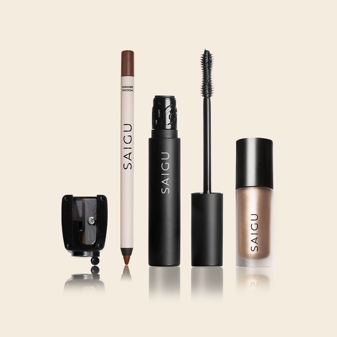 Este pack incluye: Sombra líquida One Touch + Lápiz de ojos + Máscara de pestañas
