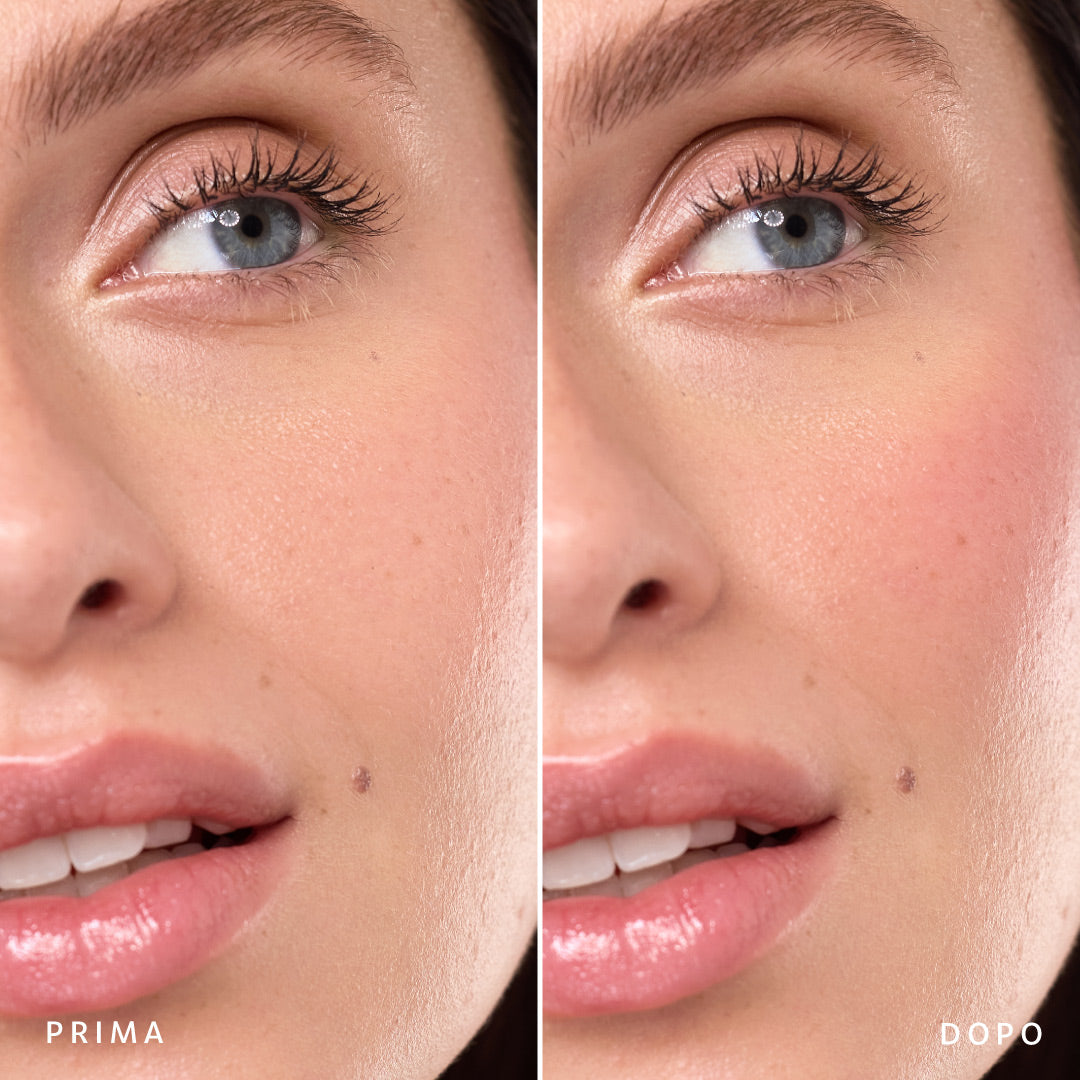 Su textura en polvo es ultrafina con acabado cremoso, y permite modular la intensidad: desde un rubor suave hasta un tono más intenso, siempre con un acabado radiante y natural. No marca poros, no reseca y se mantiene cómodo durante todo el día.