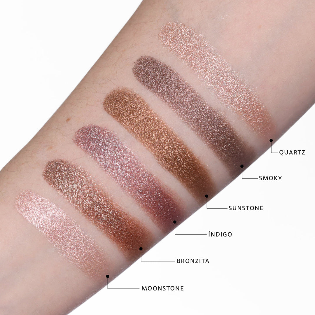 Seguro que alguna vez, atraída por su brillo, te has detenido a observar una piedra preciosa y, ante tanta belleza, has querido llevarla contigo y guardarla para siempre como si fuera un amuleto. Esta paleta de sombras vegana en 12 tonos neutros inspirados en ellas, es como una joya que querrás que te acompañe allá donde vayas.