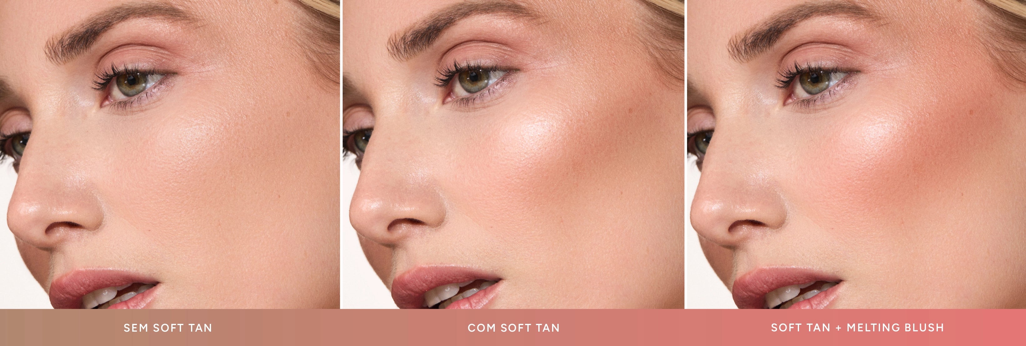 Soft Tan es el tono cálido, equilibrado y vivido que realza tu piel. Le da ese efecto tostadito muy natural a la piel y tiene una fórmula modulable que se funde a la primera y se mantiene natural durante todo el día.