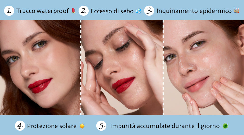 Che tu viva in una grande città, in riva al mare o in mezzo alla natura, svegliandoti ogni giorno con il suono degli uccelli, la tua pelle ha bisogno di un reset quotidiano per essere sana e libera dalle impurità. La pelle ha bisogno di un trattamento quotidiano per mantenersi sana e libera dalle impurità, e il primo passo è sempre la detersione.