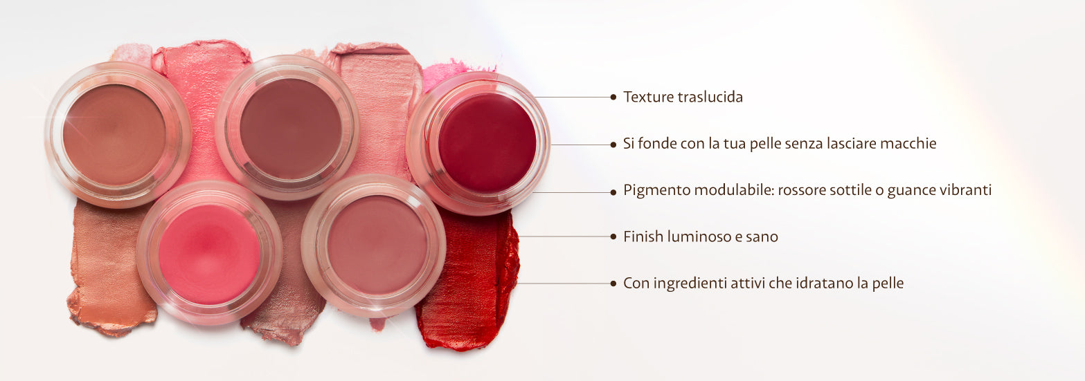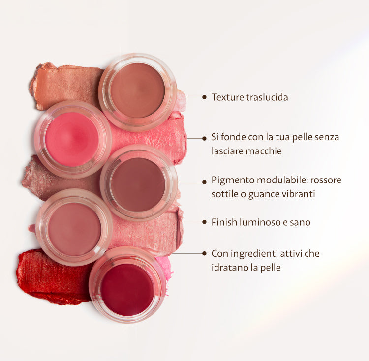Il massimo a cui un blush può aspirare è imitare il naturale rossore delle guance quando si dice qualcosa di carino, quando si prende un po' di sole o quando si ride di gusto. Questo è l'obiettivo di questo blush in crema semi-opaco: un blush che si fonde così bene con la pelle da sembrare che ne faccia già parte.