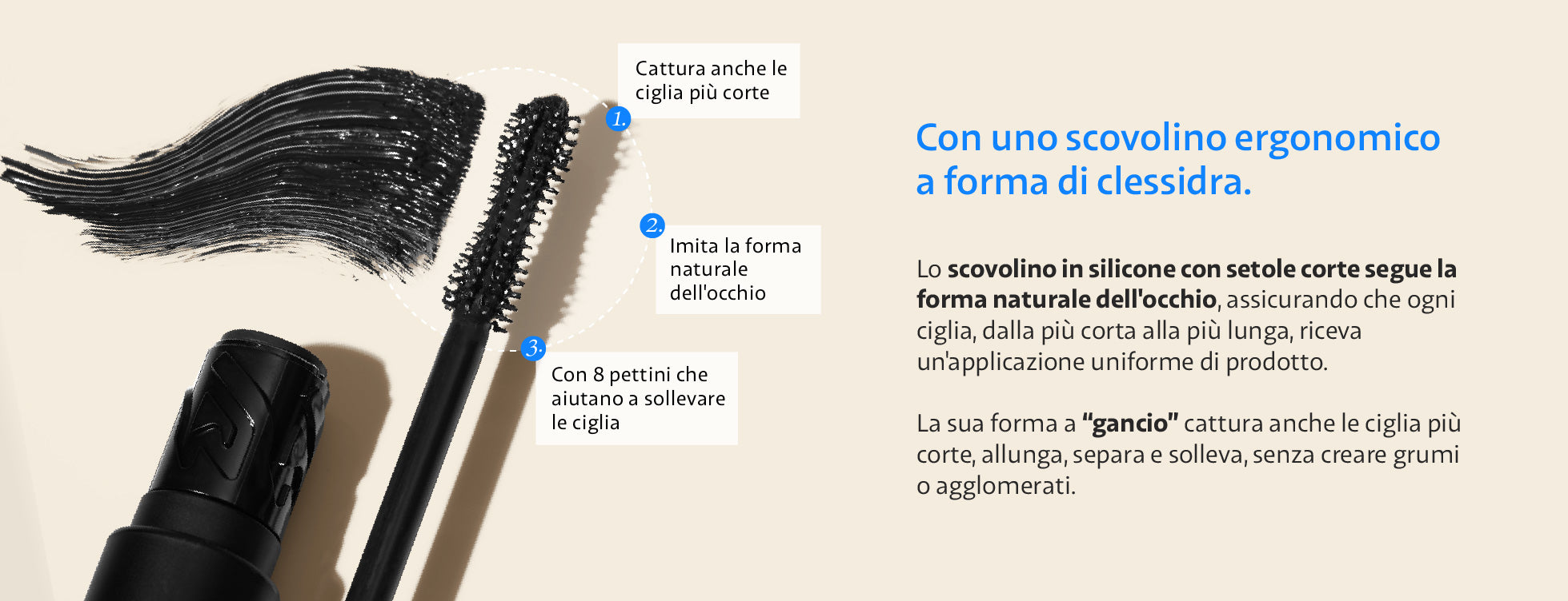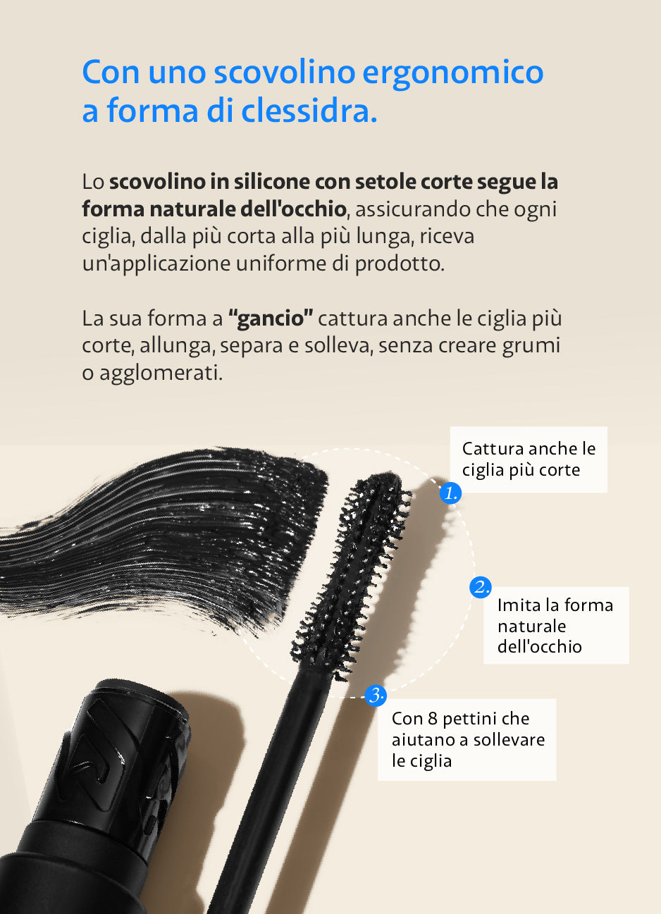 🌊 La sua formula cremosa rende le ciglia morbide e flessibili.