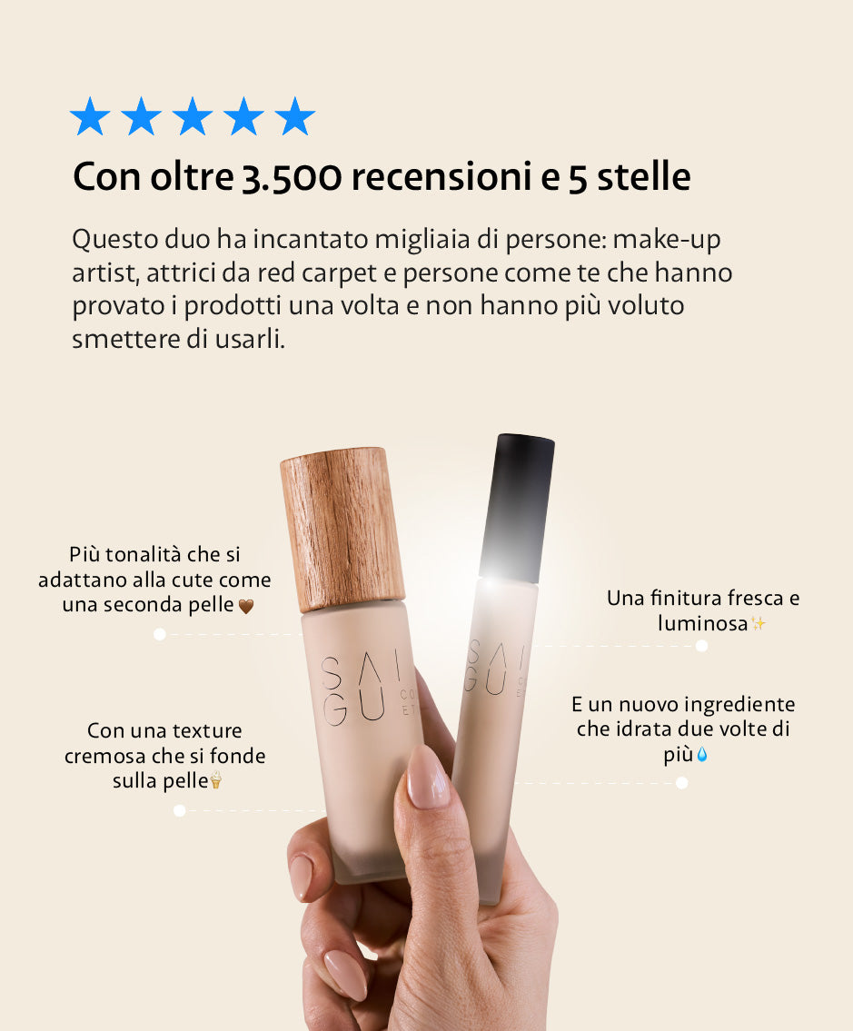 Ci piacerebbe svegliarci ogni mattina con la pelle impeccabile e bella, ma la nostra pelle è così com'è, non si comporta sempre allo stesso modo e non possiamo nemmeno pretenderla sempre perfetta. Ma per quei giorni in cui ti va di vederti bene e sentirti a tuo agio nella tua pelle, il Kit riesce con solo due prodotti a rendere il tuo viso uniforme, naturalmente luminoso e splendente.
