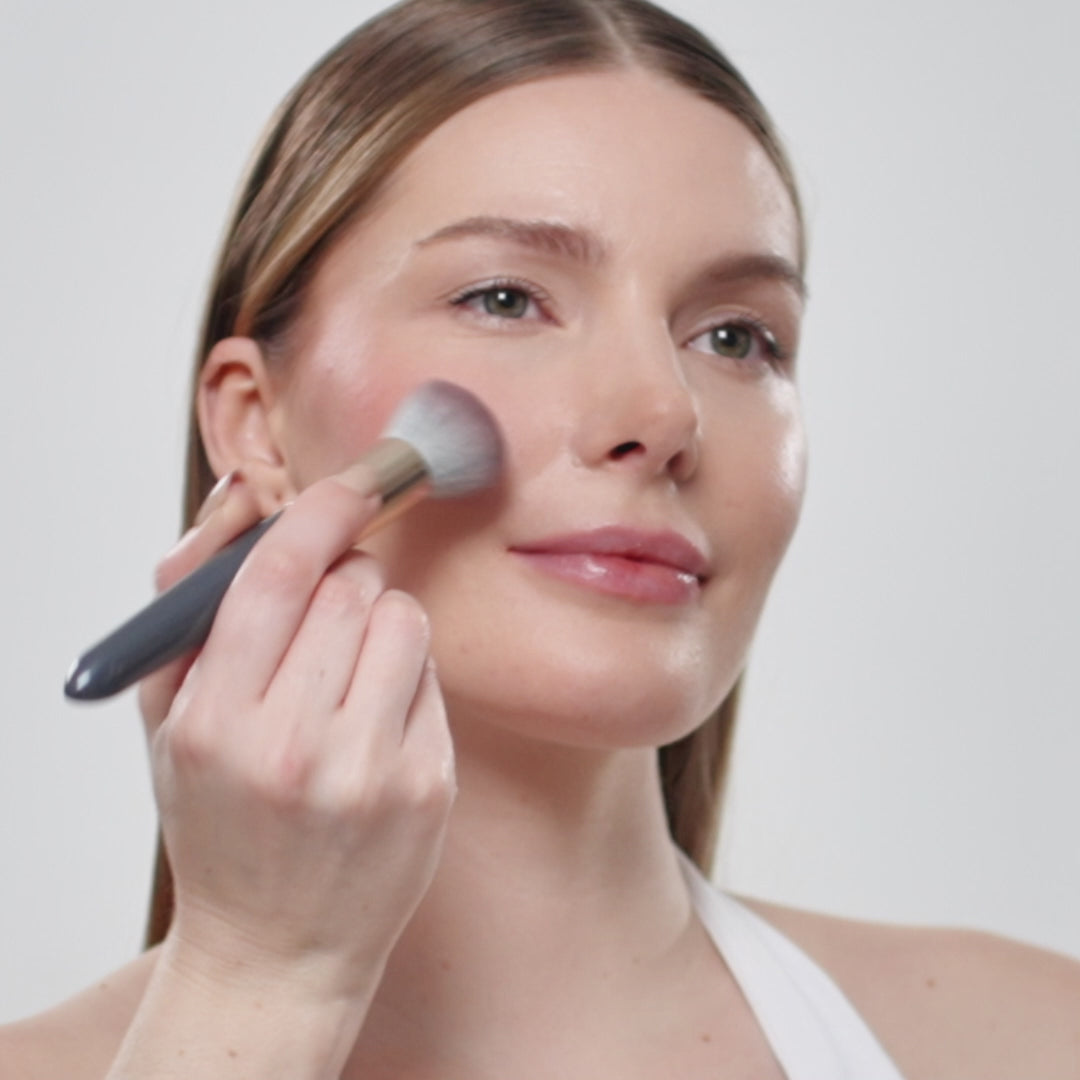 Applica il prodotto sulle zone dove la pelle si arrossa naturalmente, come le guance, e sfuma verso le tempie con movimenti ascendenti. Oppure, puoi applicarlo anche sulle "pomette" per un effetto più romantico e naturale.
