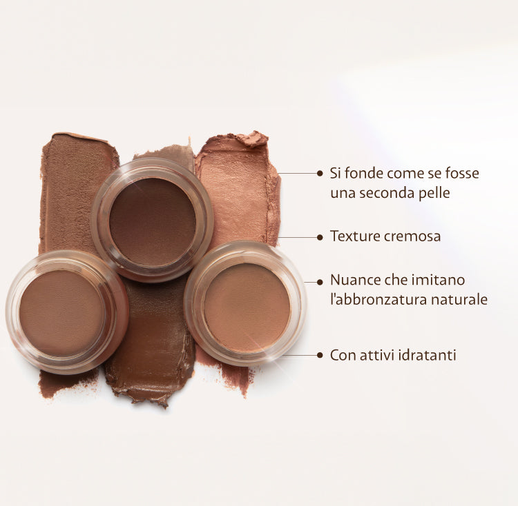 Abbiamo passato ore e ore a formulare il prodotto per trovare la nuance perfetta. Una che non fosse né troppo arancione, né troppo rossastra, né troppo grigia. Il risultato è un bronzer che ricrea un'abbronzatura super naturale, donando freschezza e vitalità alla pelle in qualsiasi periodo dell'anno.