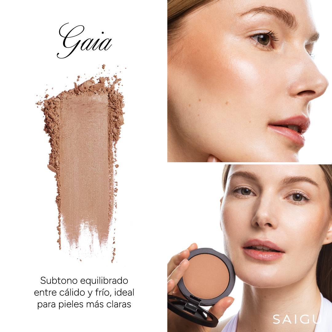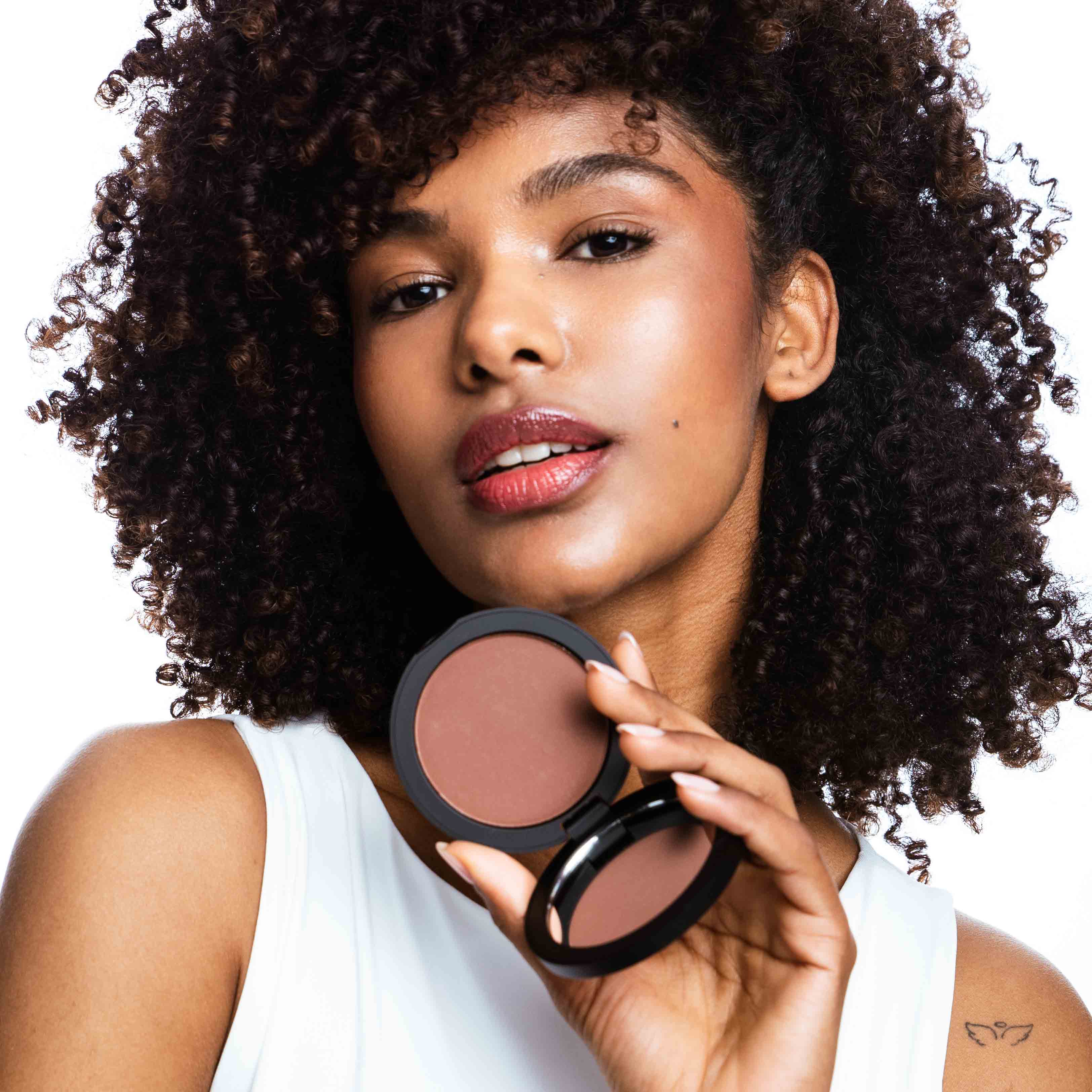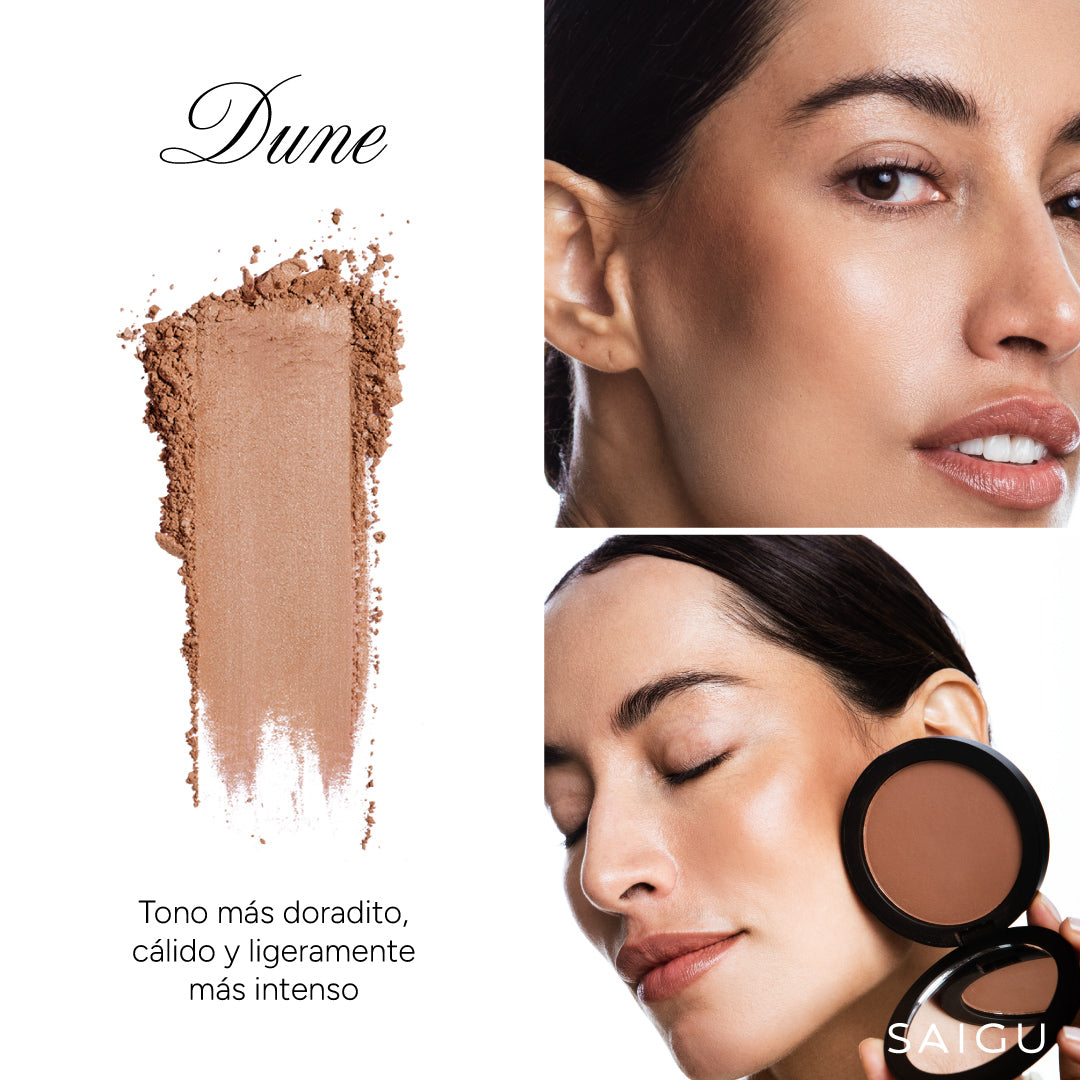 La sua formula ultra setosa scivola quasi dolcemente come un bronzer in crema, ma con la pigmentazione e la durata di una polvere. Non è la tipica polvere secca, ha una texture così morbida e fondente che ricorda un delicato velo di colore.