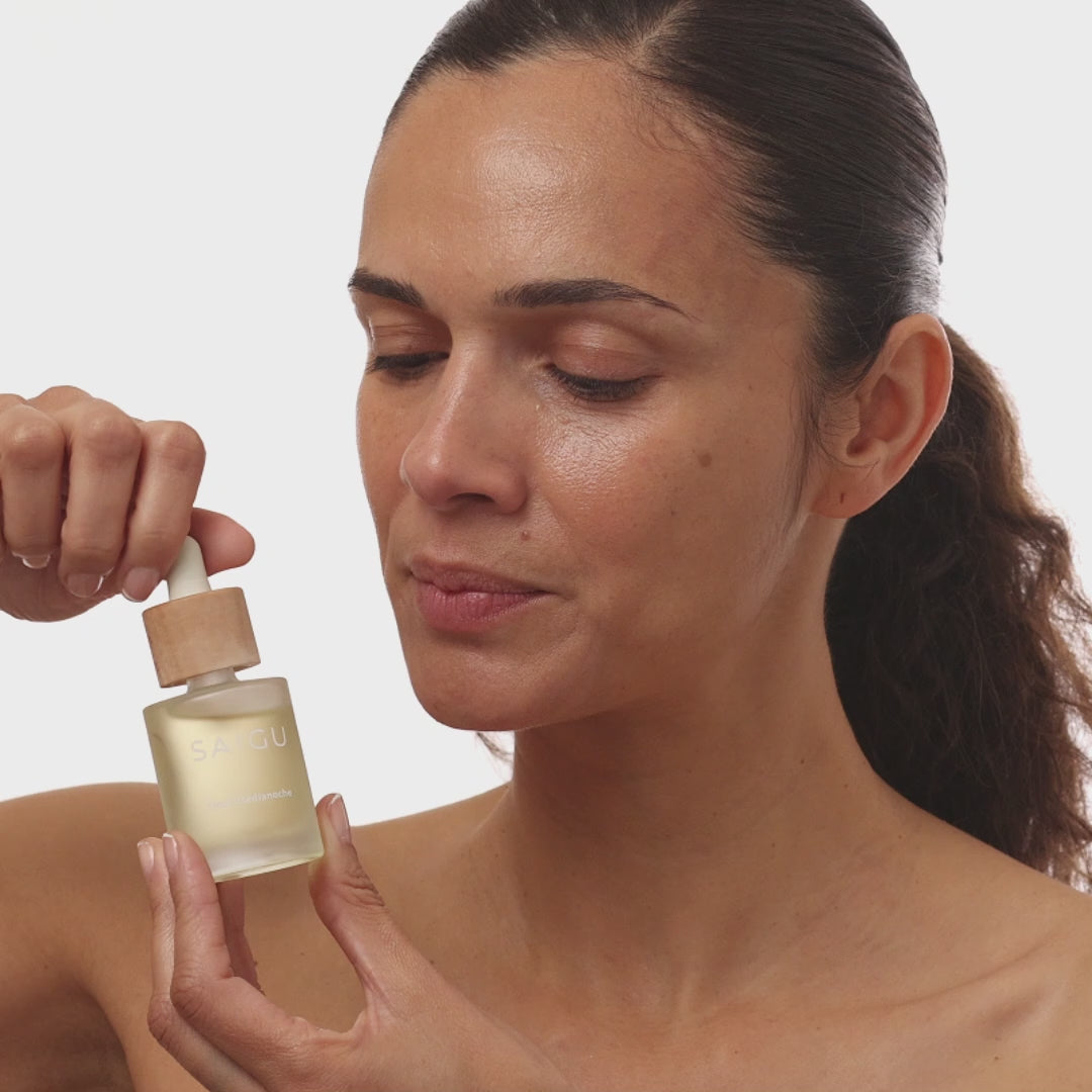 Non è necessario, perché la sua formula lipidica e non acquosa trattiene i principi attivi a contatto con la pelle. Inoltre, Mezzanotte fornisce tutta l'idratazione necessaria durante la notte. Applicare una crema solo se si desidera una sensazione più cremosa.
