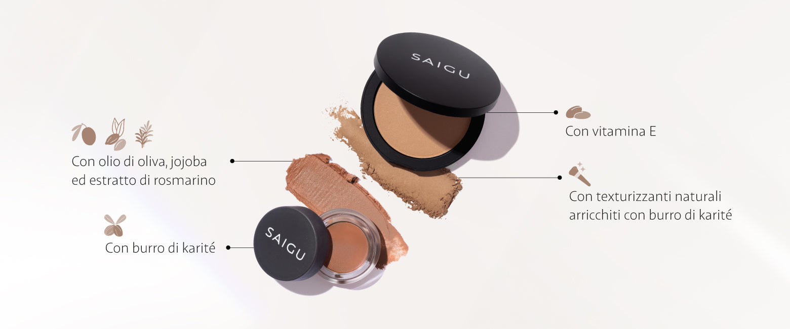 Puoi applicare prima il bronzer in polvere e poi il bronzer in crema per aumentarne la durata, oppure viceversa.
