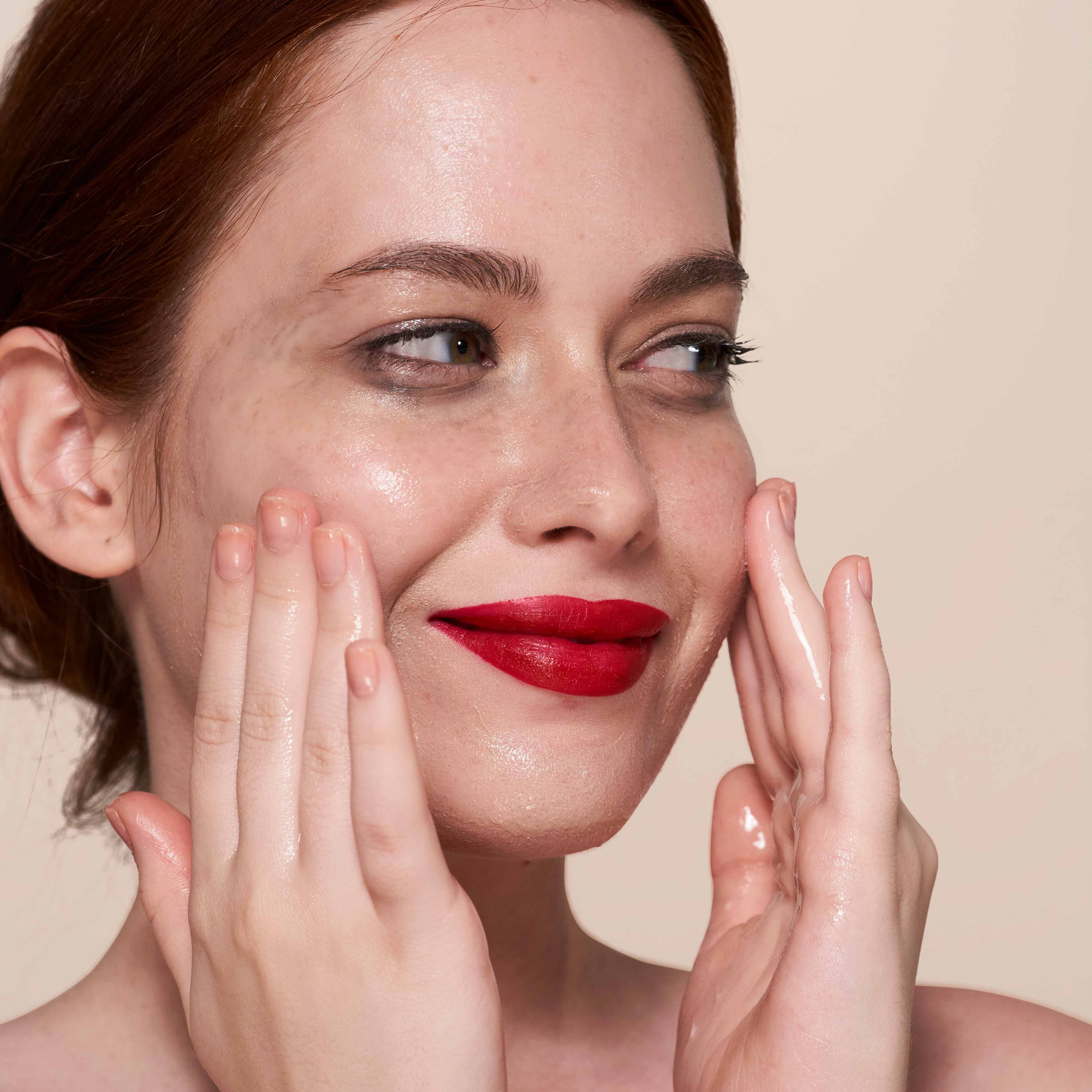 Paso 1. Vierte un ‘pump’ en tu mano y masajea suavemente con la piel seca, induciendo en las zonas donde haya más maquillaje o exceso de sebo.