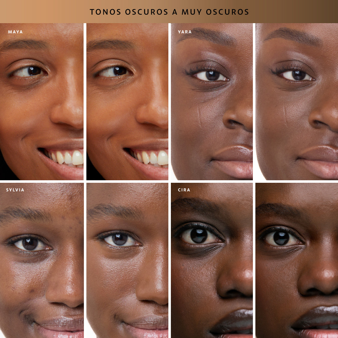 Tengo la piel muy grasa y no me gustaba usar maquillaje porque sentía que todos me acababan "pesando", hasta que encontré esta base de maquillaje. De verdad, es como si no llevara nada, te deja la piel perfecta, dura horas intacta y no da esa sensación de pesadez en ningún momento. La recomiendo 100%