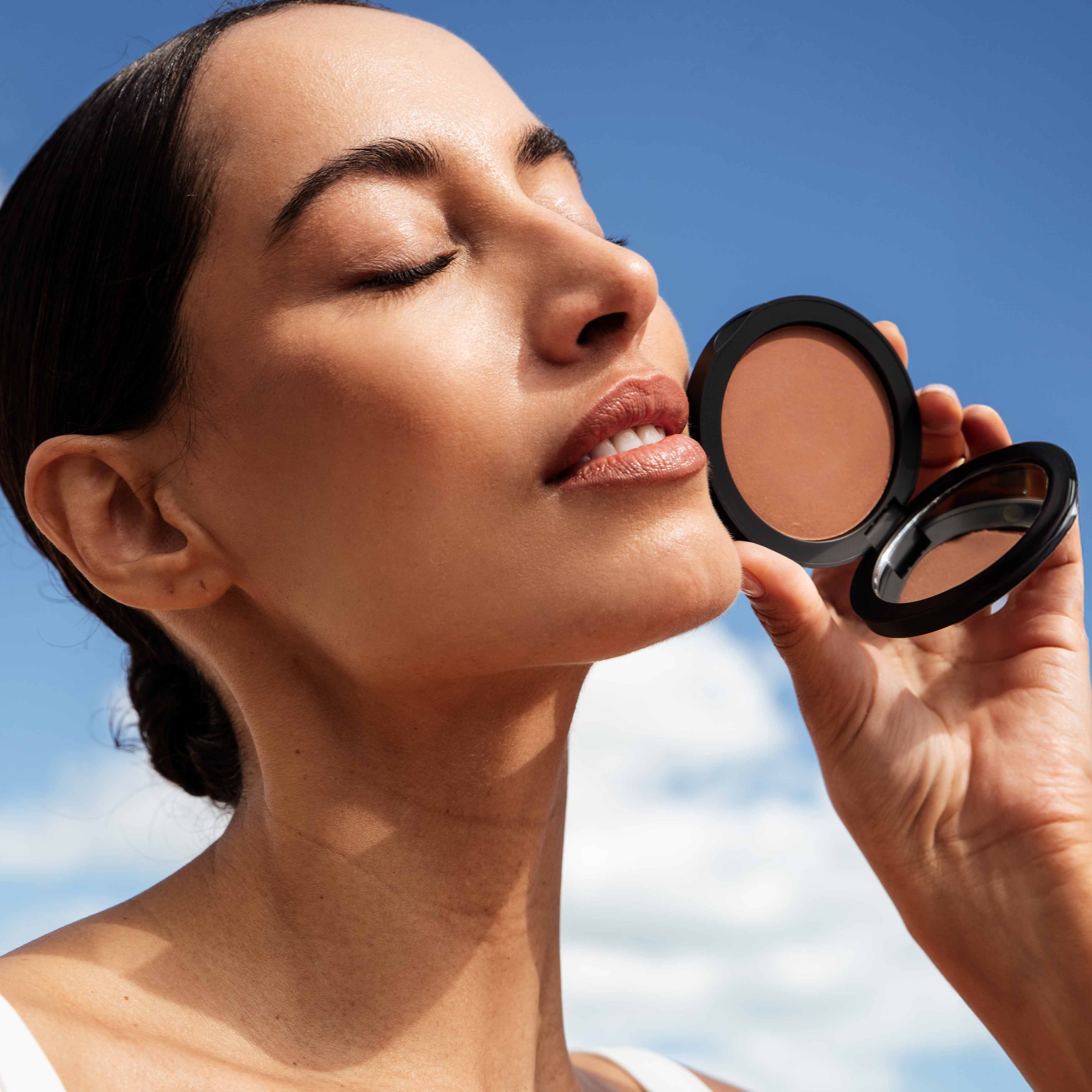 La sua formula ultra setosa scivola quasi dolcemente come un bronzer in crema, ma con la pigmentazione e la durata di una polvere. Non è la tipica polvere secca, ha una texture così morbida e fondente che ricorda un delicato velo di colore.