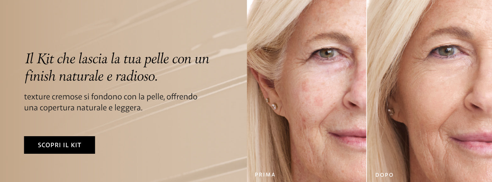 Questo KIT include: Fondotinta Pelle Radiante + Correttore Sguardo Luminoso.