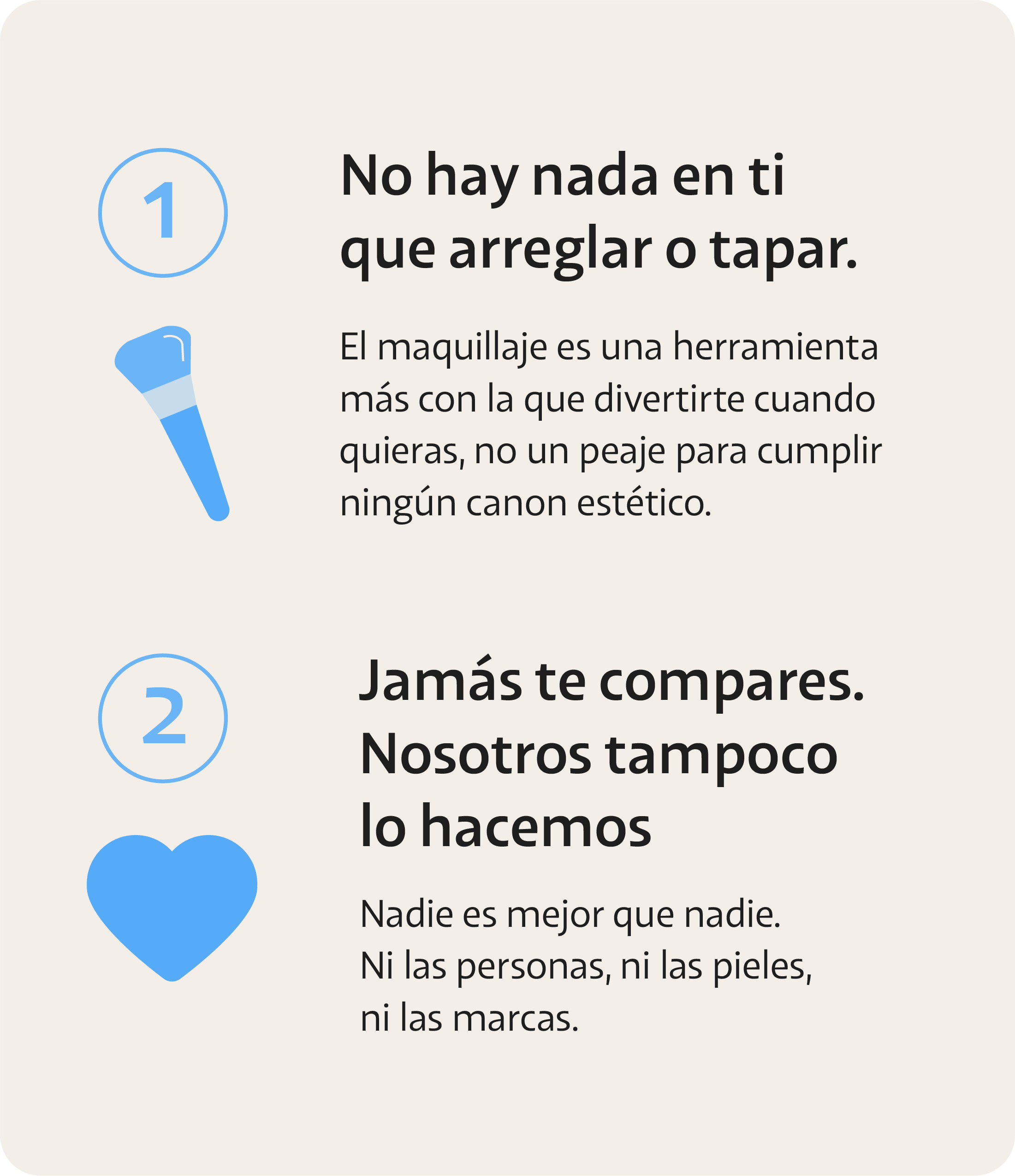 Y recordarte a menudo que el maquillaje no es una goma de borrar, sino un pincel para realzar lo que te apetezca y cuando te apetezca, porque tú ya eres genial sin él.