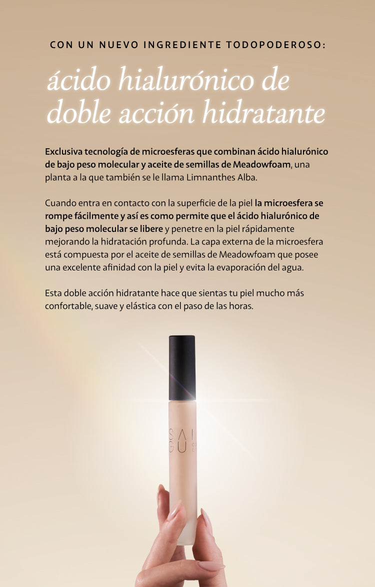 Gracias a la exclusiva tecnología de microesferas de ácido hialurónico de bajo peso molecular y el aceite de semillas de Meadowfoam sentirás tu ojera más confortable y elástica con el paso de las horas.
