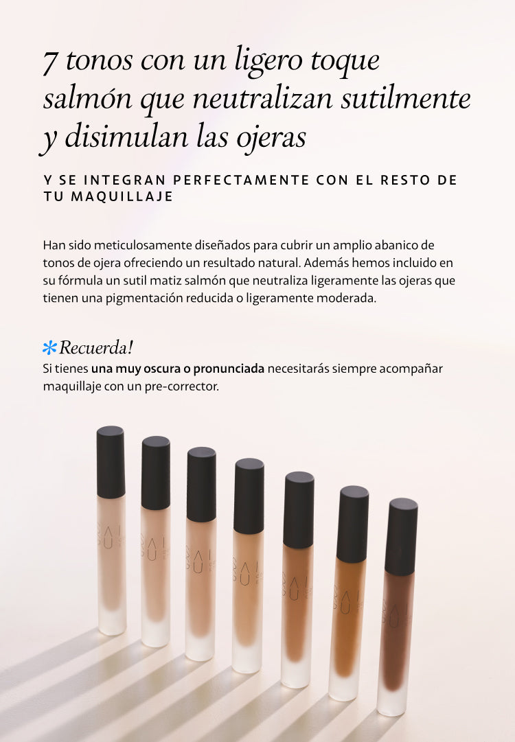 Aunque en su fórmula hemos incluido un tono salmón sutil para neutralizar ojeras con una pigmentación reducida o ligeramente moderado, si la tuya es muy pronunciada y oscura necesitarás utilizar un pre-corrector.