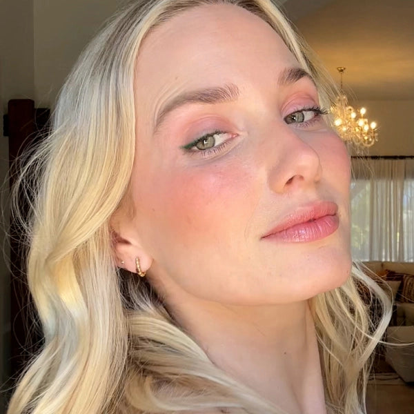 Un look completo que lleva el efecto Mediterranean Glow a todo el rostro, sumando luz en la piel y en la mirada.