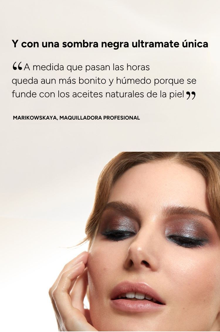 Textura mate: Fórmula aterciopelada, de gran pigmentación y modulable para que puedas ir construyendo tu ahumado según la intensidad que quieras.