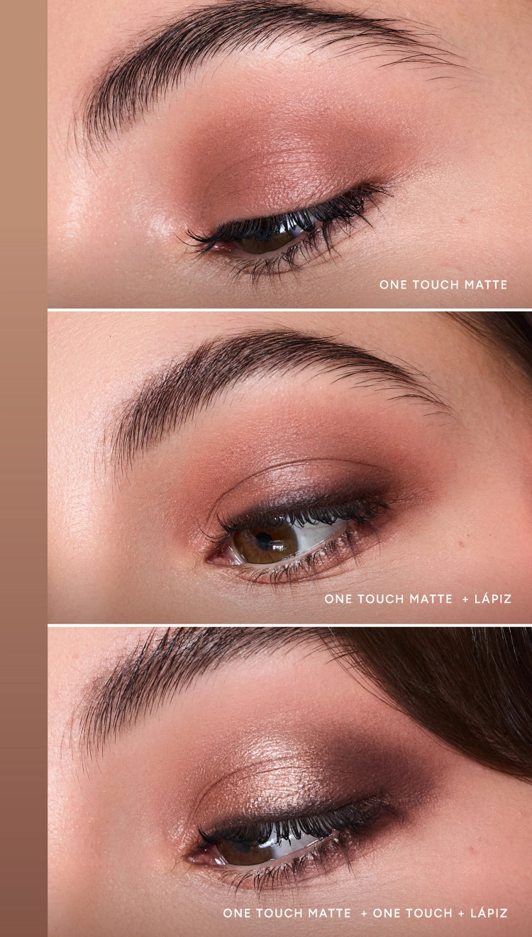 Deslizar esta sombra líquida tiene algo de adictivo. One Touch Matte se posa sobre tu párpado y se entiende con él como si se conocieran de siempre. Deja un acabado mate suave que no empolva ni deja sensación tirante.