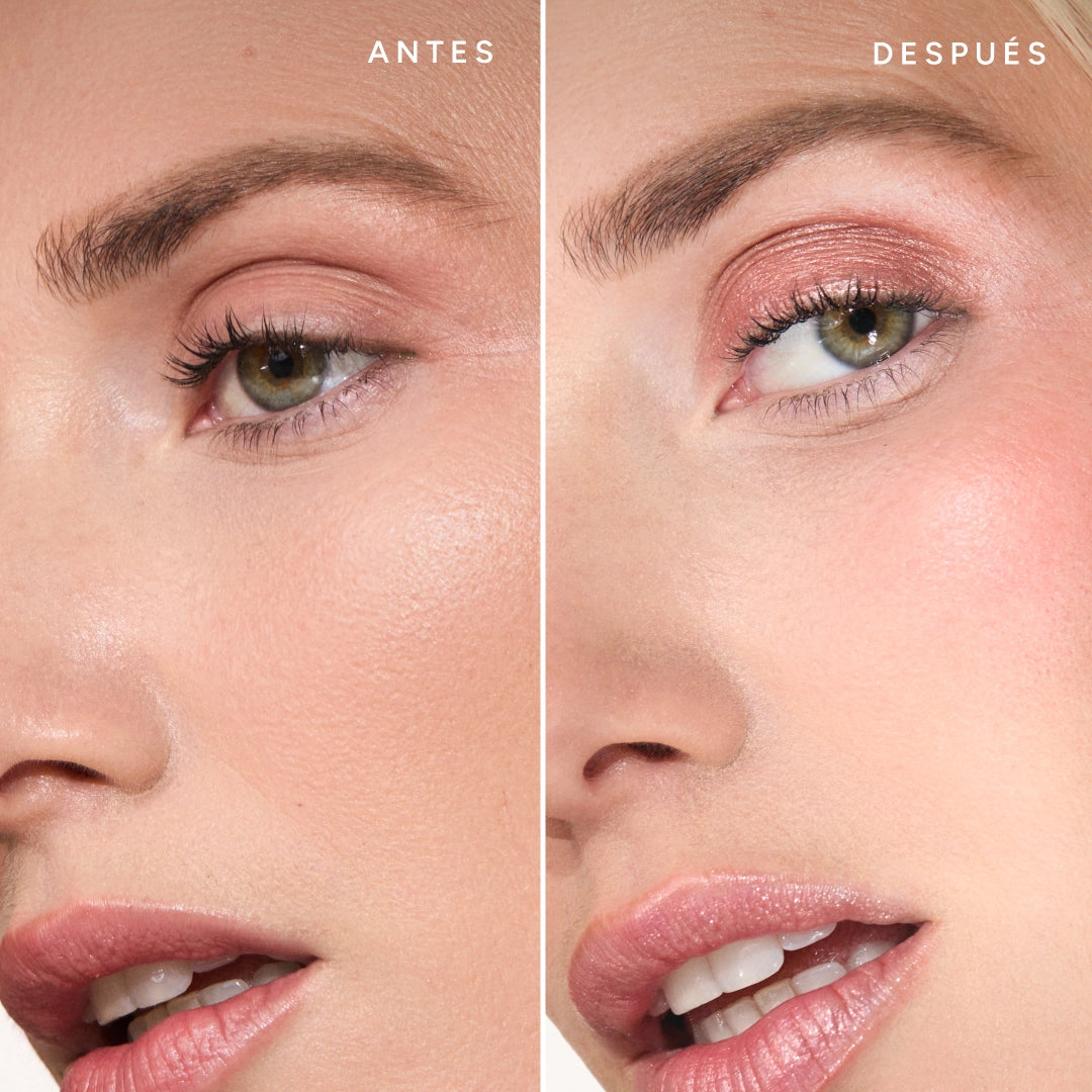 Maravillosa, como ese brillito del sol que nos sienta bien a todos. Y en la mirada, eso se traduce en luminosidad, profundidad y suavidad. Es muy ligera (olvídate de esa sensación pegajosa o tirante) y se funde completamente, incluso cuando sumas capas.