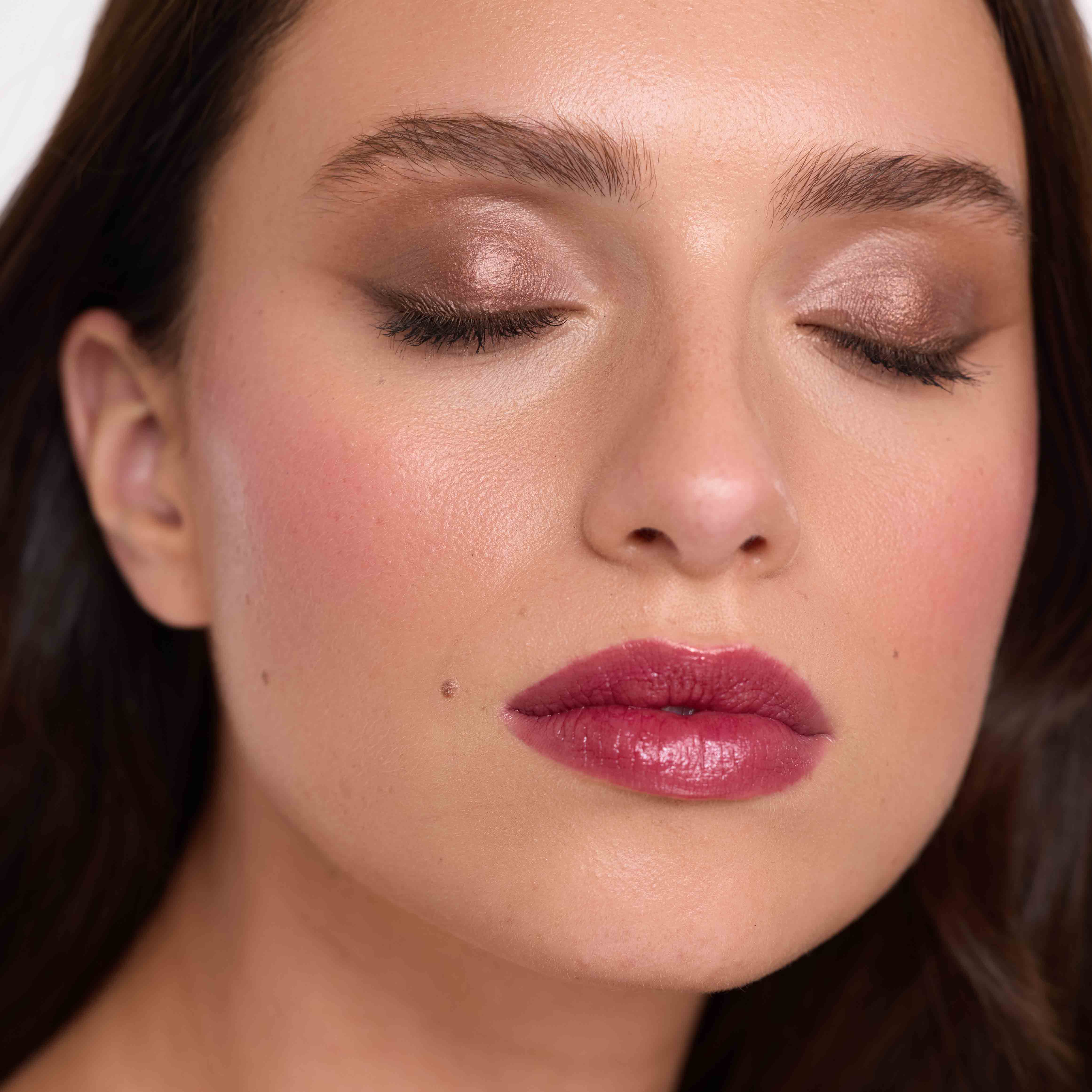 Este look traduz a essência cherry girl com um toque bronze que dá profundidade e elegância ao olhar.