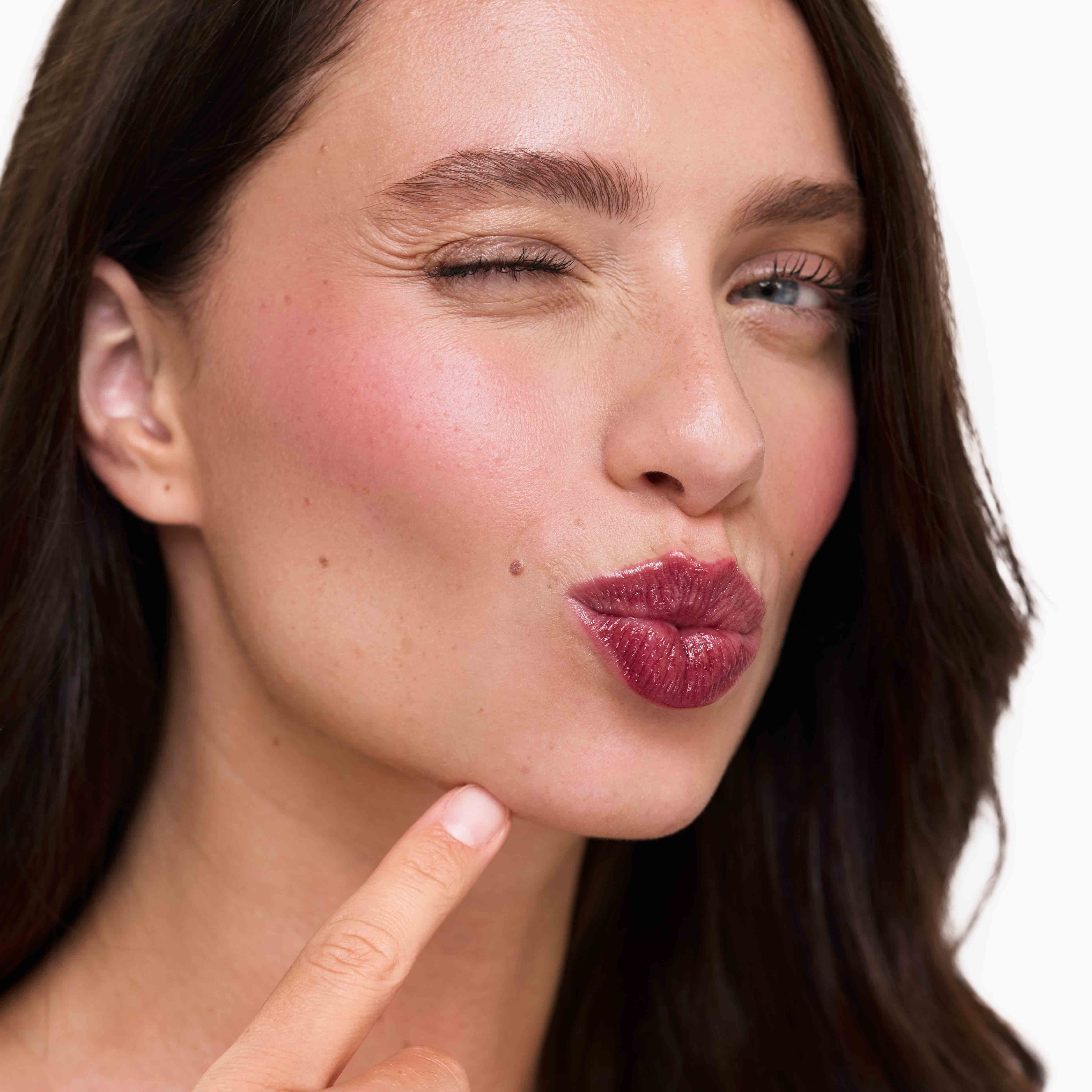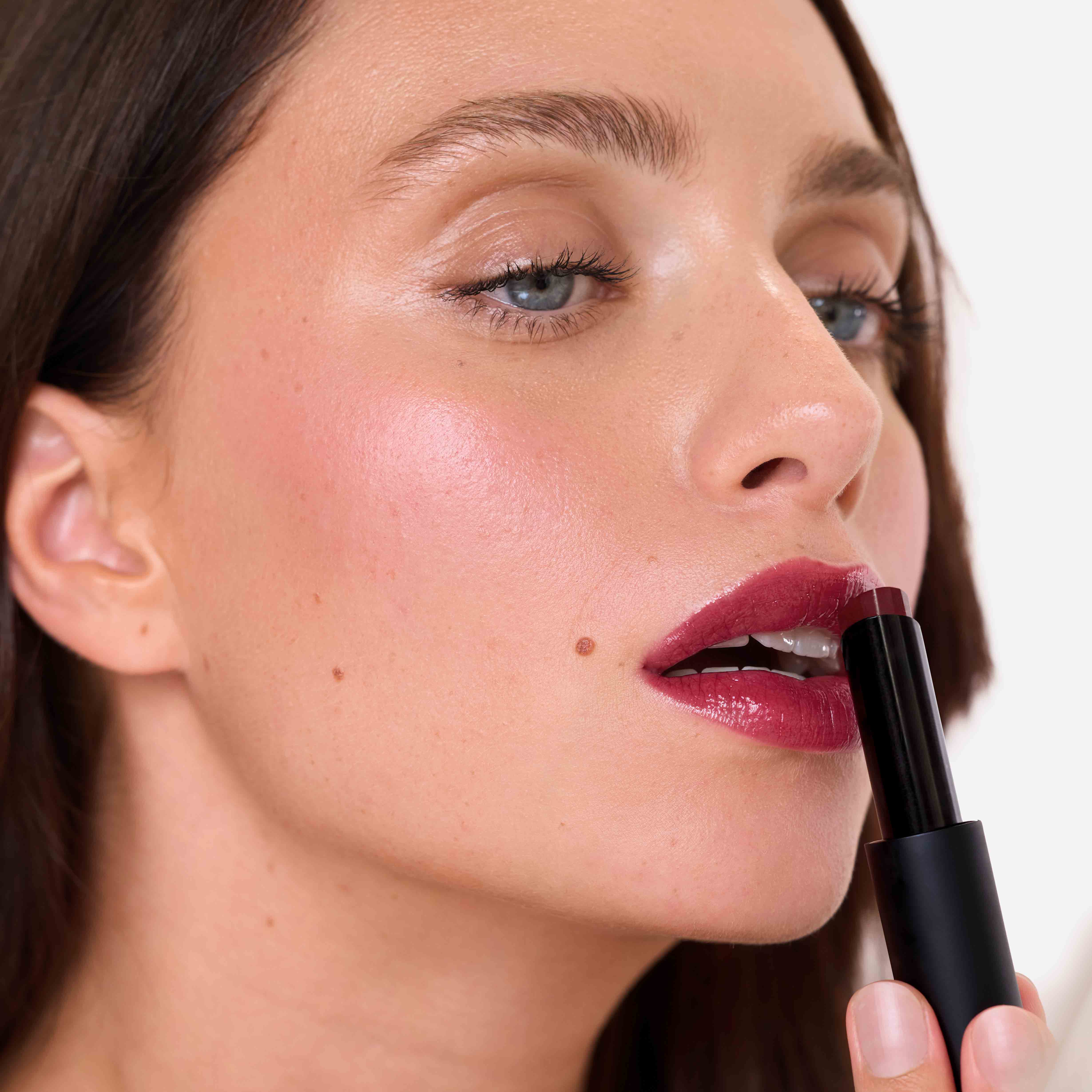 Um tom ameixa fácil de usar que veste os lábios com um brilho sumarento