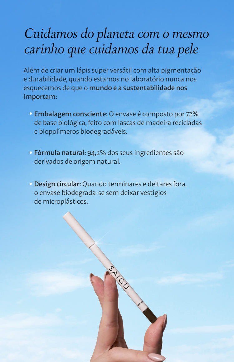 Avisamos que este lápis é muito resistente. Vai precisar de um produto oleoso para removê-lo. O nosso óleo desmaquilhante Calma é perfeito para isso.