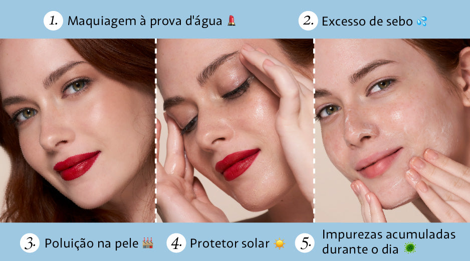 💄 Remove resíduos de produtos, incluindo maquilhagem waterproof, protetor solar, óleos…