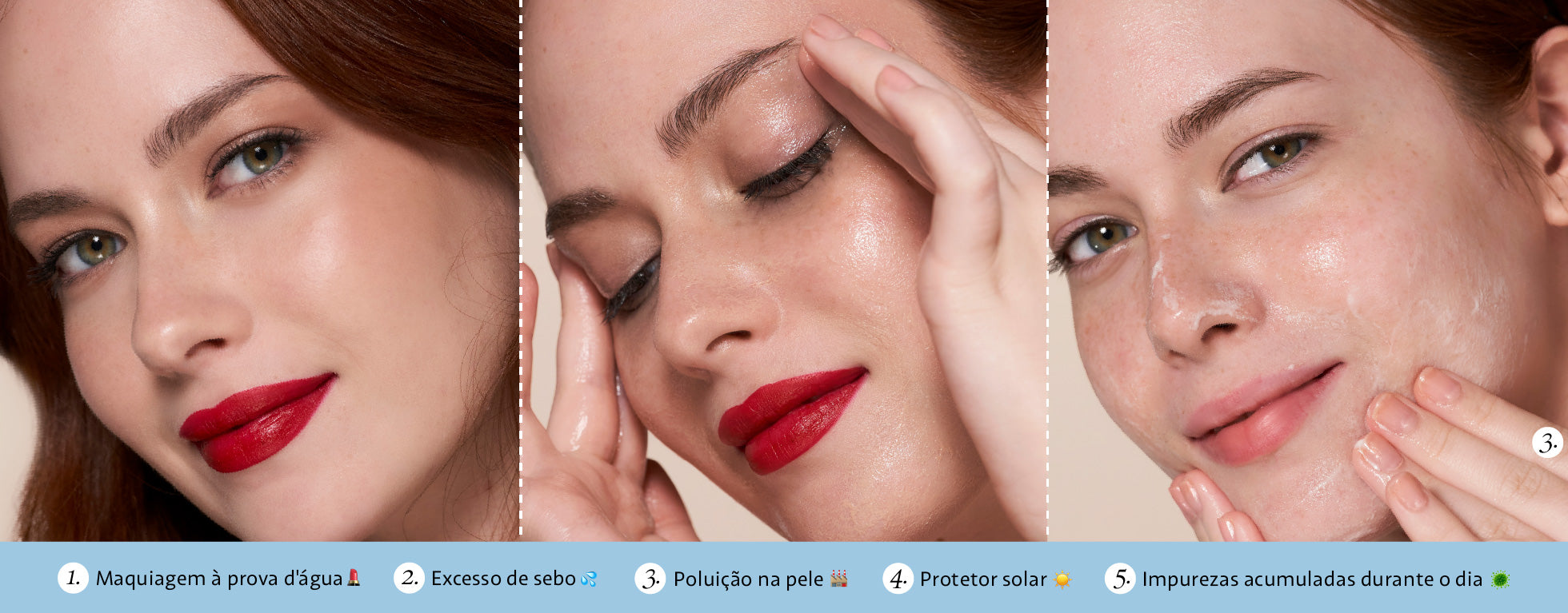 Não importa se vives numa grande cidade, ao lado do mar ou no meio da natureza, acordando todos os dias com o som dos pássaros. A pele precisa de se reiniciar diariamente para manter-se saudável e livre de impurezas, e o primeiro passo é sempre a limpeza.