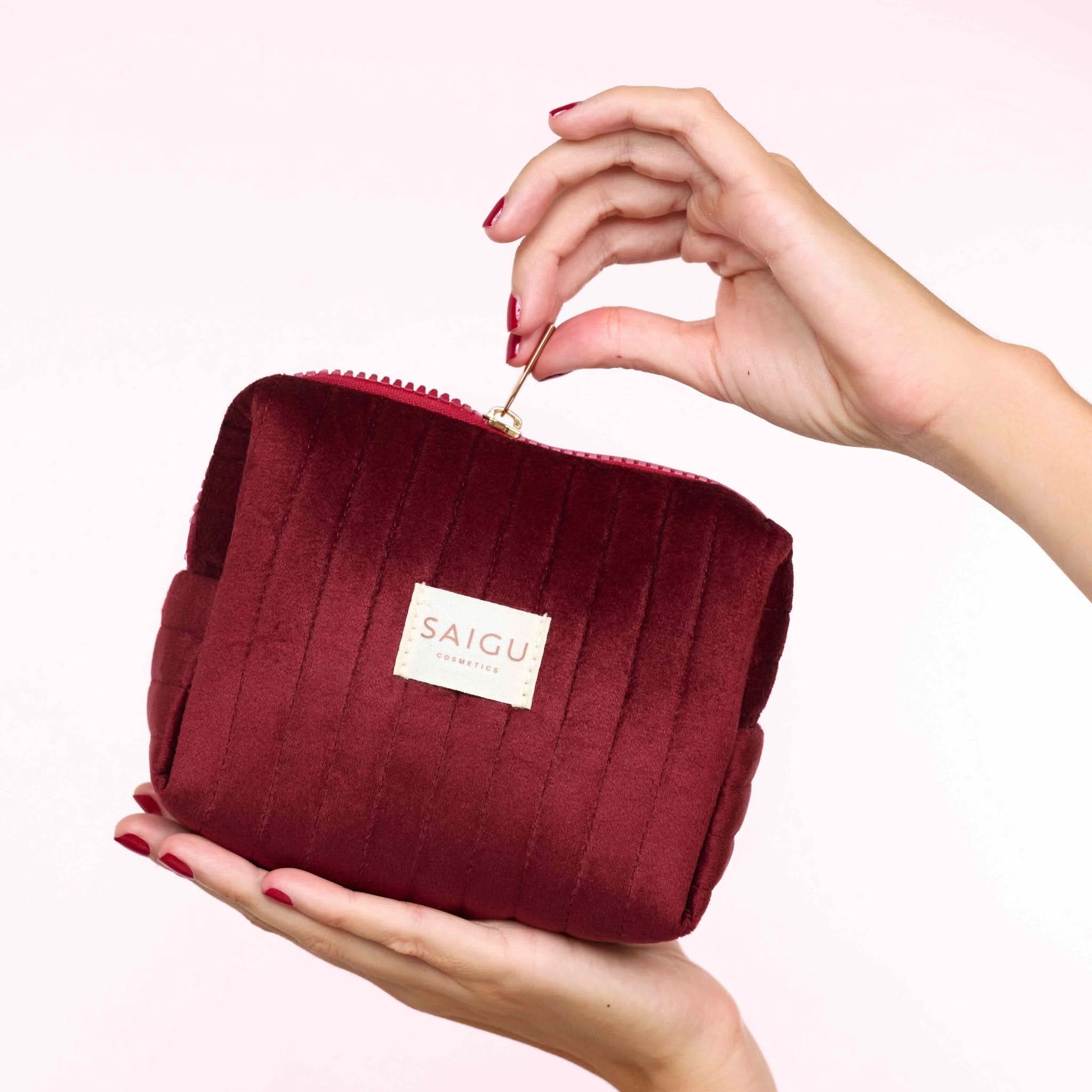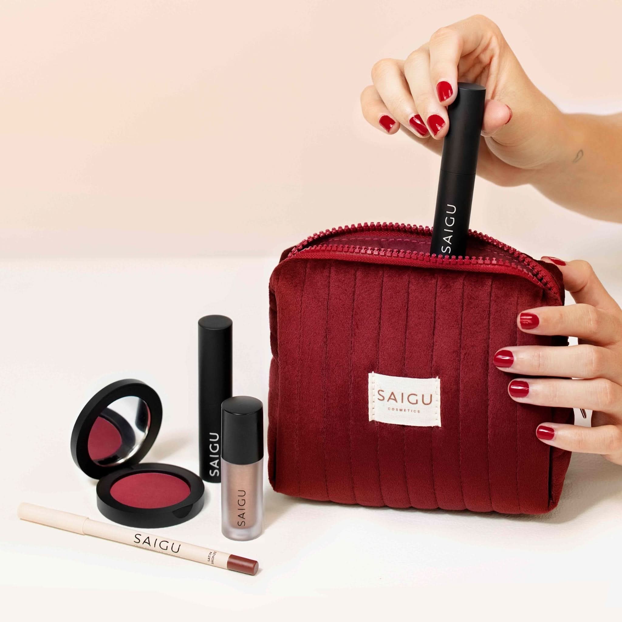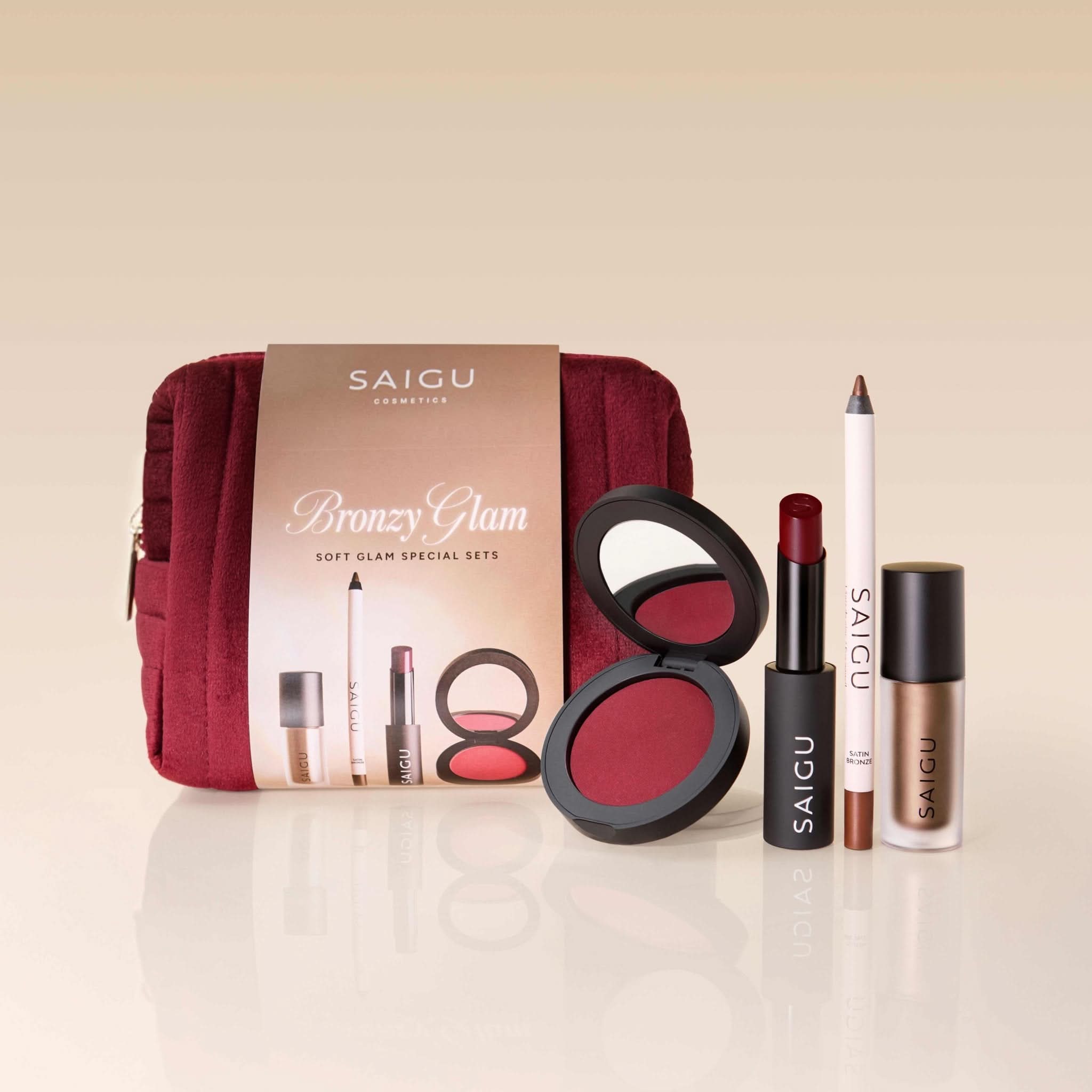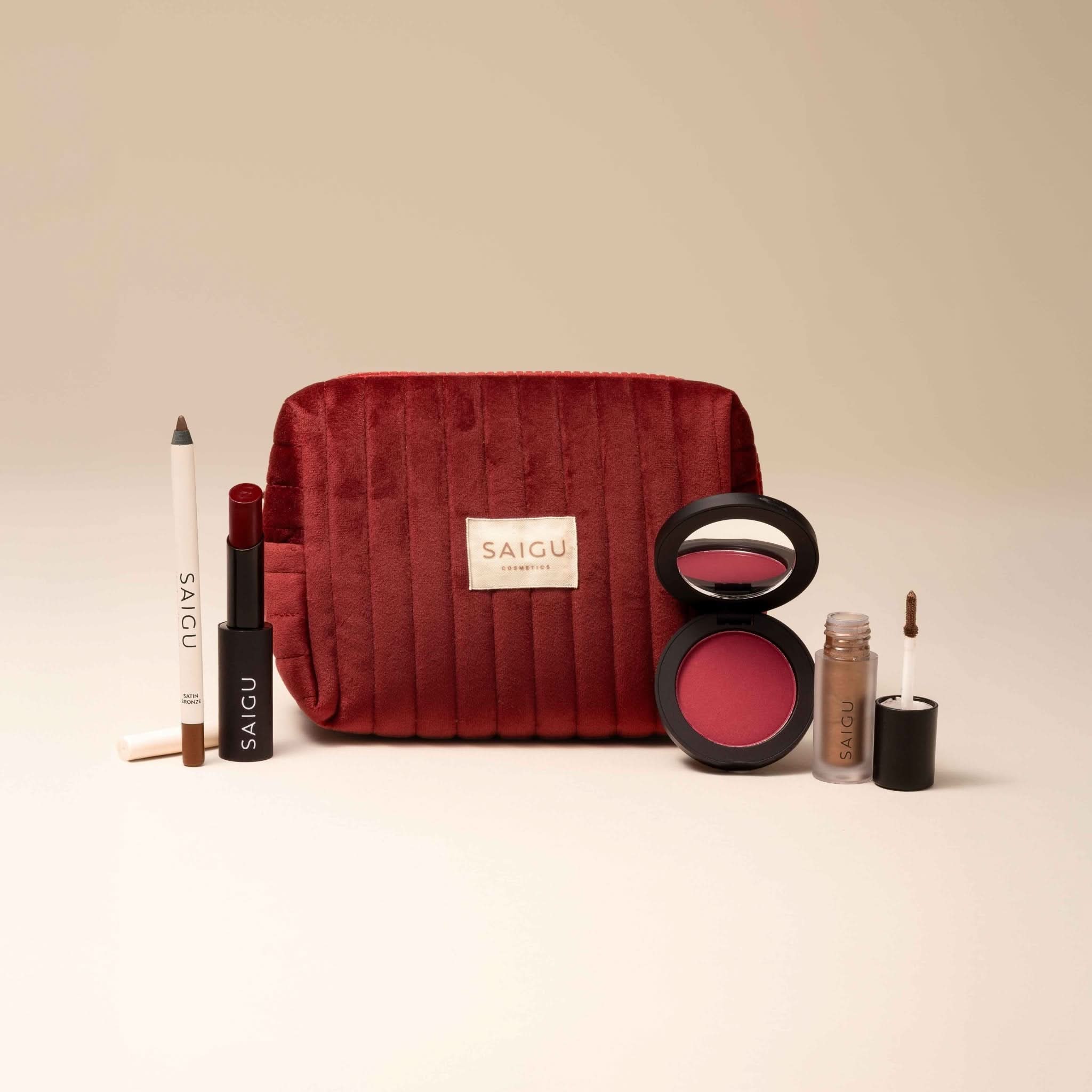 A tendência Cherry Glam ganha um toque sofisticado com pálpebras em tons bronze cintilante, maçãs do rosto com um rubor cereja suave e lábios luminosos com efeito de fruta fresca acabada de morder.