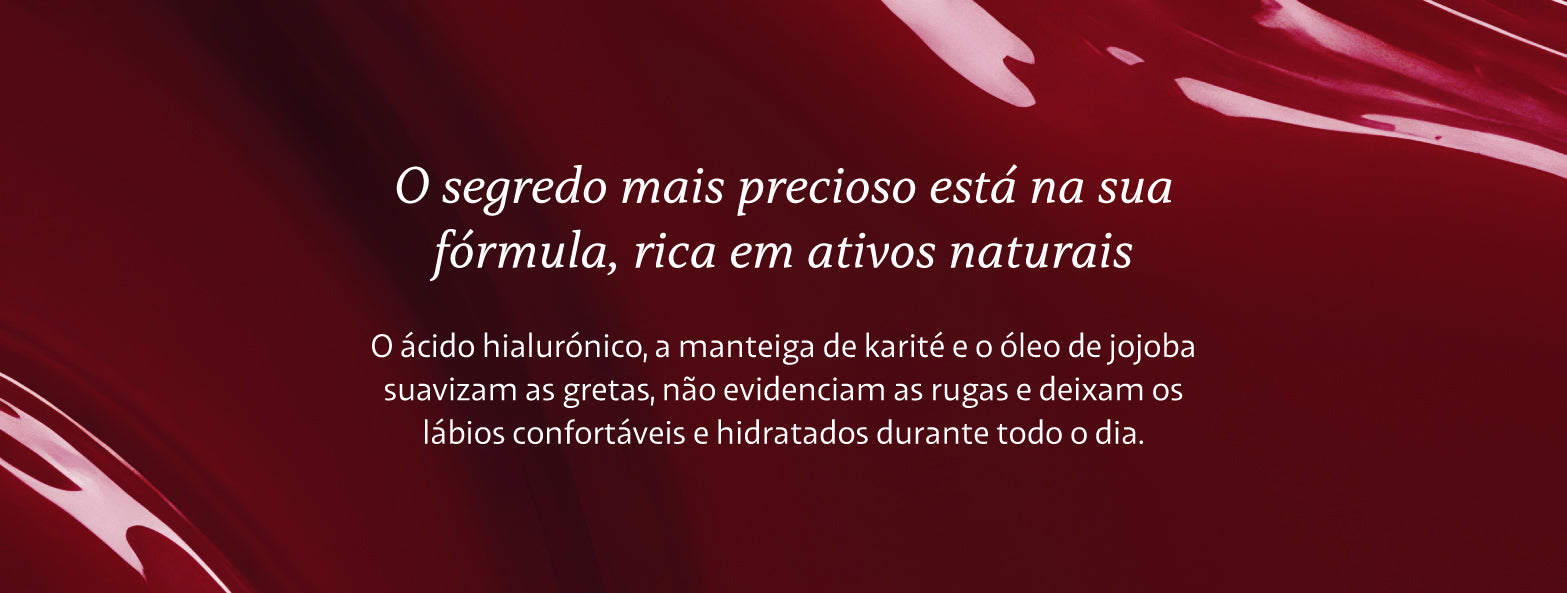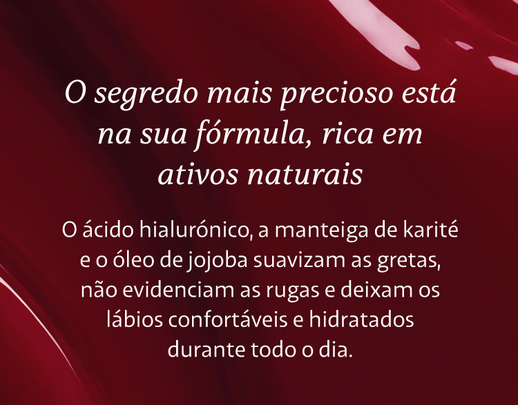 Além de realçar o teu tom de pele, dá também um volume subtil e bonito, com efeito de lábio saudável.