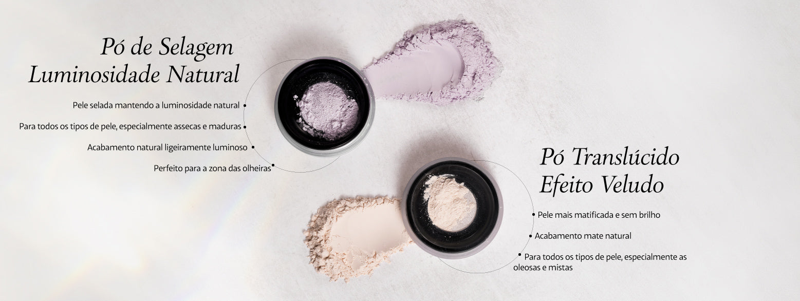 Procurámos matérias-primas que fossem muito, muito leves e transparentes porque queríamos garantir que não deixavam rasto na pele depois da aplicação. O resultado são pós translúcidos que atuam como um véu invisível e que não pesam nem se notam.