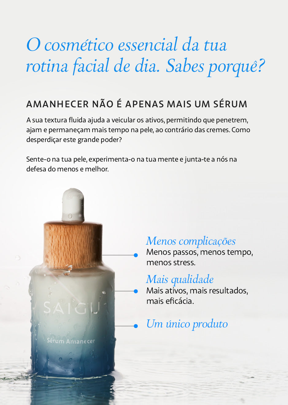 Não é necessário, pois a sua fórmula lipídica, não aquosa, retém os ativos em contacto com a tua pele. Além disso, o sérum multiativo revitalizador Amanecer proporciona toda a hidratação que precisas durante o dia. Aplica um creme apenas se desejares uma maior sensação de untuosidade.